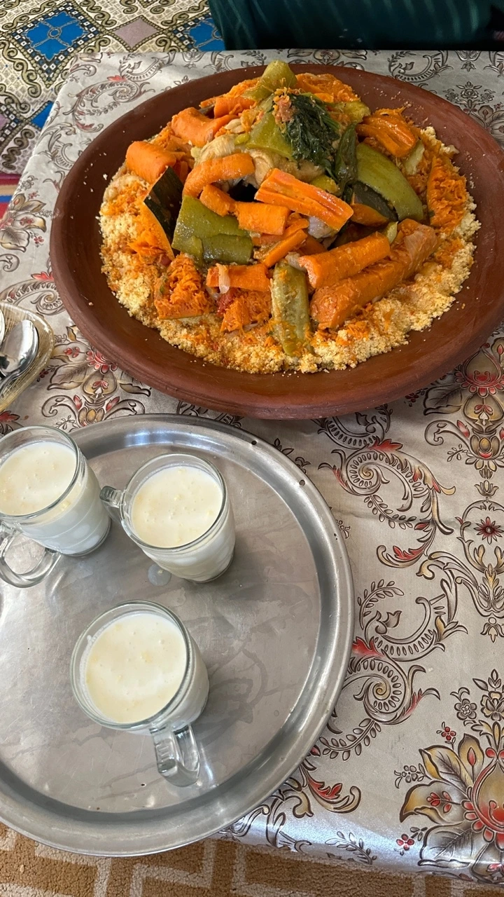 위 사진에 쿠스쿠스 말고 또 하나 보이는 것이 있다. 바로 '르반'이다. 우유에서 버터가 되어가는 중간 과정 즈음에 있는 시큼짭짤한 음료가 바로 르반으로, 쿠스쿠스와 함께 먹는 것이 일반적이다. 마트에 가면 쉽게 살 수 있는 것이 르반이지만, 시골의 르반과 같은 맛이 나는 르반은 절대 구할 수 없다.