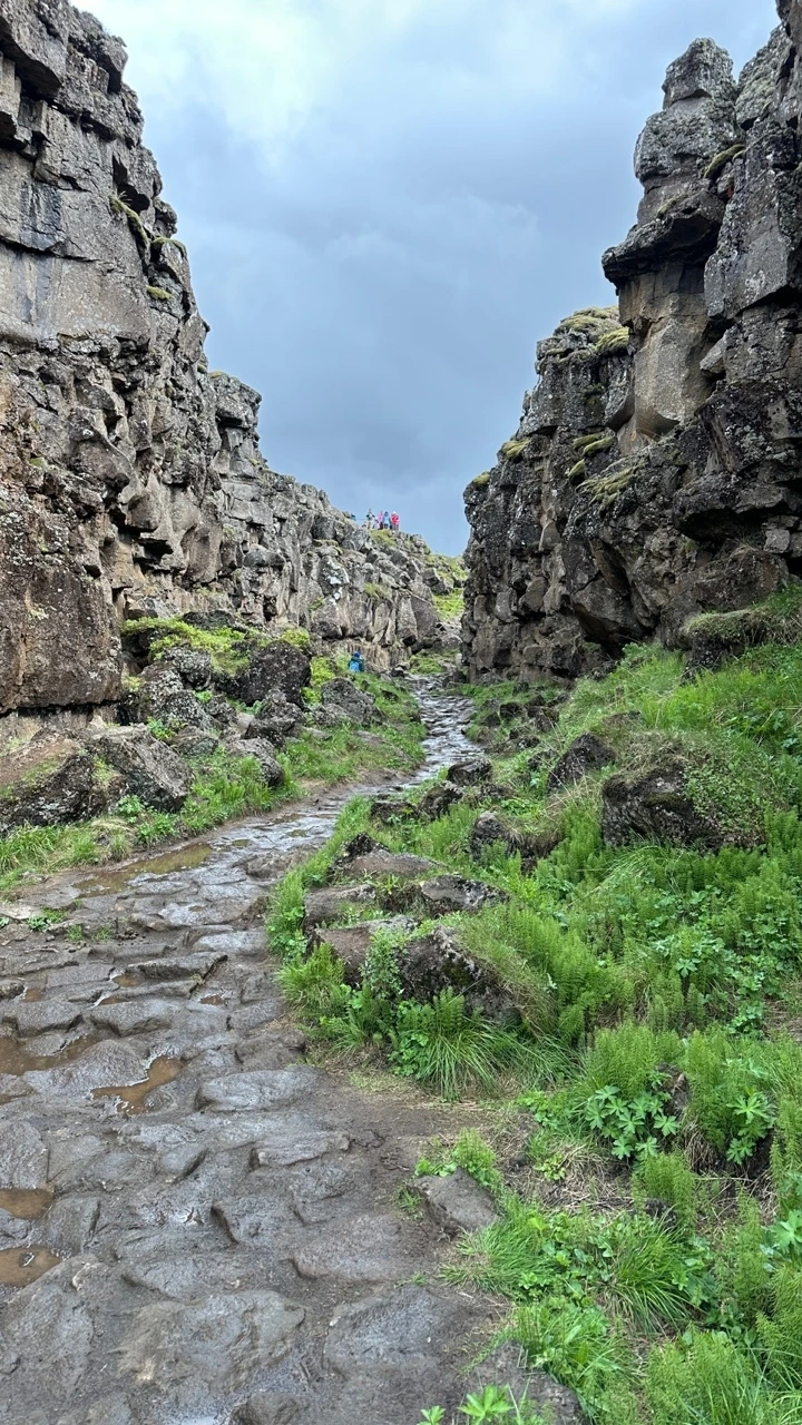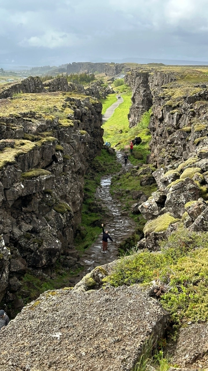 알마나기야(Almannagjá)협곡은 단층이 갈라진 틈을 걸어볼 수 있는 장소이다. 거대한 땅이 갈라진 단면이 양옆으로 끝없이 펼쳐진 장관을 바라보고 있자면 먼지보다도 하찮은 우주의 미물이라는 말의 의미를 몸소 체험할 수 있다.