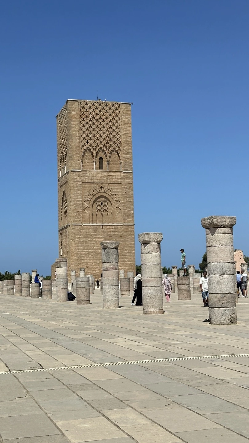 라바트의 하산탑에 가면 탑 앞에 수많은 기둥들이 서 있는 장소가 있다. 이곳은 예전에 커다란 모스크를 지으려다 도중에 지진으로 무너진 뒤 미완성된 곳으로 지금은 그 기둥만 남아 있고 작게 지은 모스크가 그 앞에 있다. 다수의 신자들이 모일 때는 바깥의 기둥들 사이에서 기도하는 사람들도 볼 수 있다.원래의 계획대로라면 아단이 울려 퍼지는 탑이 되었을 하산탑은 꼭대기까지 세워지지 못한 채이긴 하지만 많은 사람들이 걸음하는 명소로 남아있다.