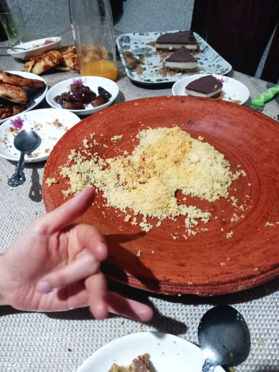 찰칵. 텅 빈 쿠스쿠스 쟁반을 찍어서 붑커에게 전송.