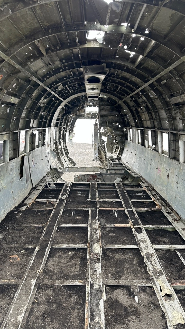검은 모래의 해변 위의 비행기는 그날따라 우중충했던 하늘 아래에서 더욱 음산한 풍경을 자아냈다. 대자연 속 외따로 쓰러져 있는 기계의 모습이 모순적이면서도 그래서 더 눈길을 끈다.망망대해에 떠있는 조각배처럼, 드넓은 대지 위에 덩그러니 떨어진 비행기는 멀리서 보면 손톱만한 조약돌과 크게 다를 것이 없는 회색 점으로 변한다. 가도가도 끝이 안보이는 어두운 땅 어딘가에 불시착했을 때 비행기 안에 있던 이들을 덮쳤을 공포감이 그 잔해에서 느껴지는 듯 했다. (다행히 수송기라서 적은 수의 사람들만 타고 있었고 모두가 살아서 구출되었다고 한다.)