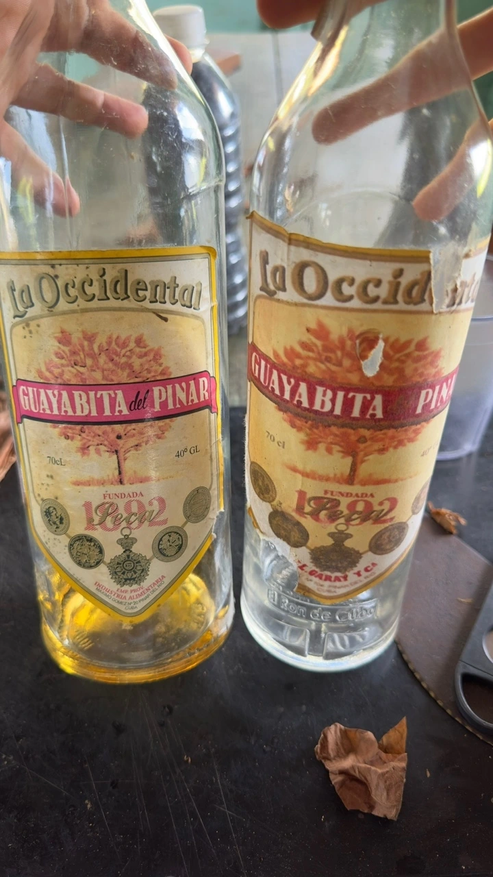 농부 아저씨께서 맛보라고 주신 쿠바의 술. 왼쪽이 진품, 오른쪽은 누가 봐도 조잡해 보이는 가품. 여행객들은 잘 모르고 가품에 속는 경우가 있다며 주의를 주셨다.