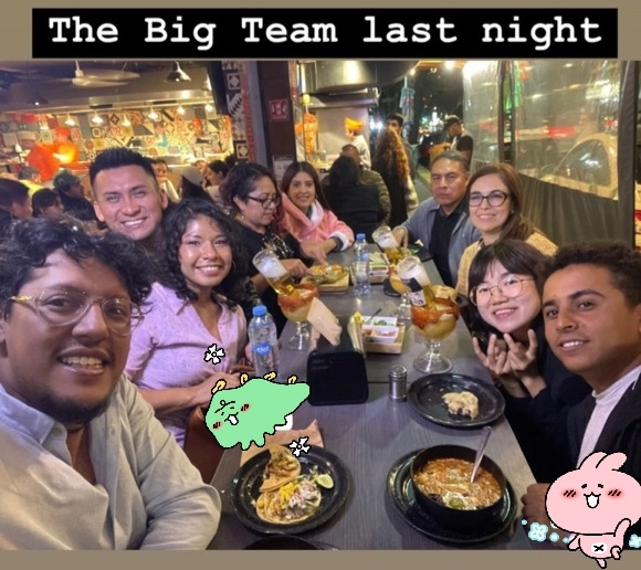 연 후에 그냥 헤어질 수는 없는 법. 집에 가기 전 이반의 친구들과 짧은 모임을 가졌다. 어쩌다 보니 이틀 연속 음주를 하게 되었지만 멕시코의 술문화를 배우는 체험의 시간(?)이기도 했다. 오늘은 어제 마셨던 마르게리따(데킬라를 베이스로 각종 음료와 섞어 마시는 달콤한 술)에다가 멕시코의 맥주 중 하나인 코로나를 섞어 마시는 '마르가로나'를 주문해 보았다. 인적으로는 맥주를 별로 즐기지 않아서 내 입맛엔 마르게리따만 따로 마시는 게 더 맛있었다.