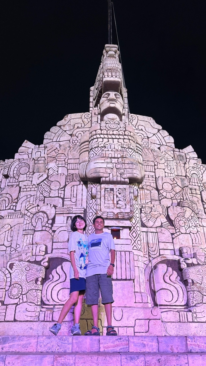 날씨가 선선하여 오래 걸어도 쾌적했다. 앙헬과 데보라네 집에서부터 한 30분을 걸으니 메리다 중심 거리가 나왔다. 중앙에는 멕시코의 역사를 돌에 빙 둘러 조각한 큰 기념비 Manumento de la patria가 서 있다. 마야부족의 문양들로 장식된 이 기념비에는 멕시코의 모든 도시들의 이름이 새겨져 있다. 우리가 익히 아는 이름들이 아닌 길고 생소한 단어들이다. 현재의 것이 아닌 식민지배 전 본래의 이름이기 때문이다.