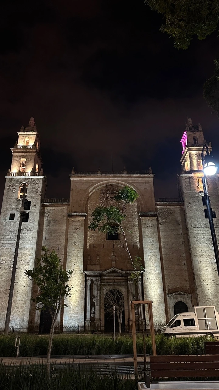 메리다 광장에 있는 산 일데폰소 대성당은 라틴 아메리카에서 가장 오래된 성당들 중 하나이다. 지금은 성당이 서 있지만, 과거의 메리다에는 원주민들이 만든 무려 다섯개의 피라미드들이 서 있었다. 그 때문에 과거 메리다는 '이쉬칸 지호(Ichkan ziho)', 마야어로 다섯개의 피라미드라는 뜻을 가진 이름으로 불렸다고 한다.