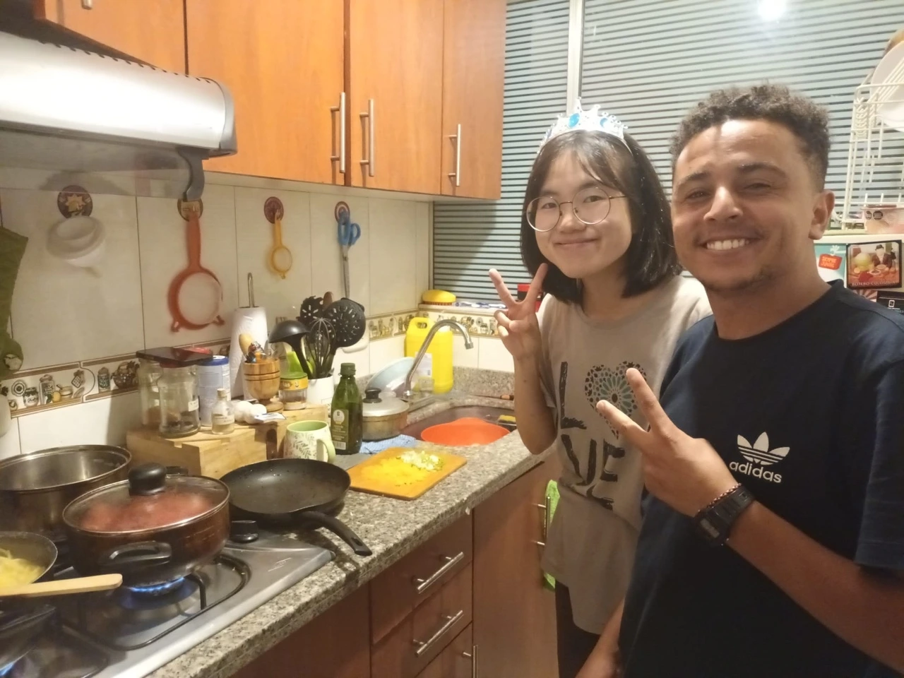 그렇게 한국, 모로코, 스페인, 베네수엘라, 콜롬비아식으로 다섯번의 건배를 하며 잔을 부딪혔다. 네개의 다른 대륙, 다섯개의 다른 나라에서 모인 다섯지 다른 목소리가 아름답게 섞였다.