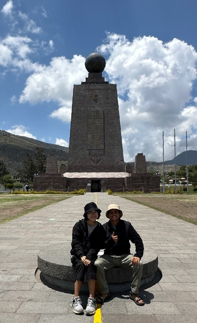 에콰도르는 스페인어로 '적도' 뜻하는 말이다. 그 이름처럼 키토에는 '세상의 중심'이라 불리는 위도 0도의 장소가 있다. 뒤쪽에 서 있는 기념비를 배경으로 반구와 북반구를 나누는 노란 선 위에 앉아 사진을 찍었다. 남반구에 처음 발을 디뎠을 때처럼 묘한 기분이 들었다.