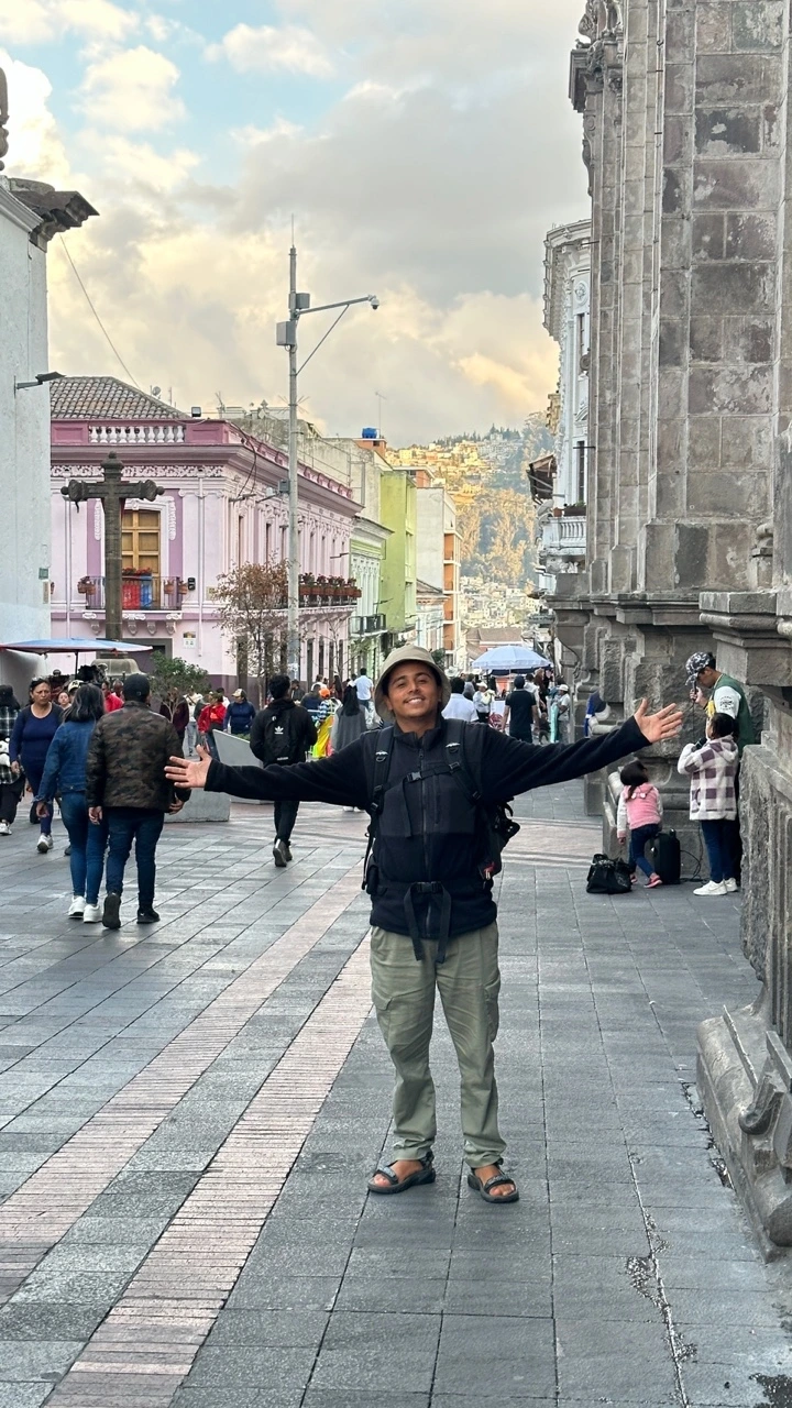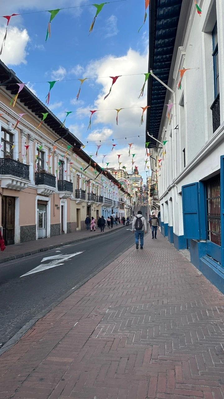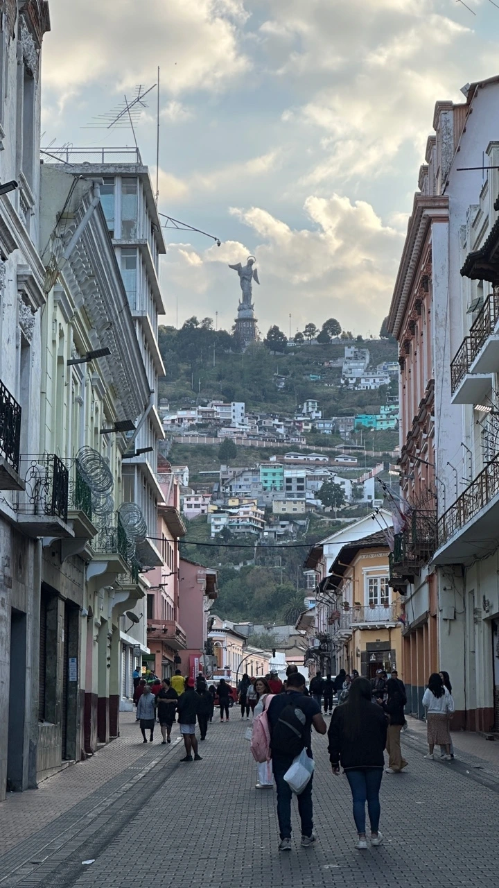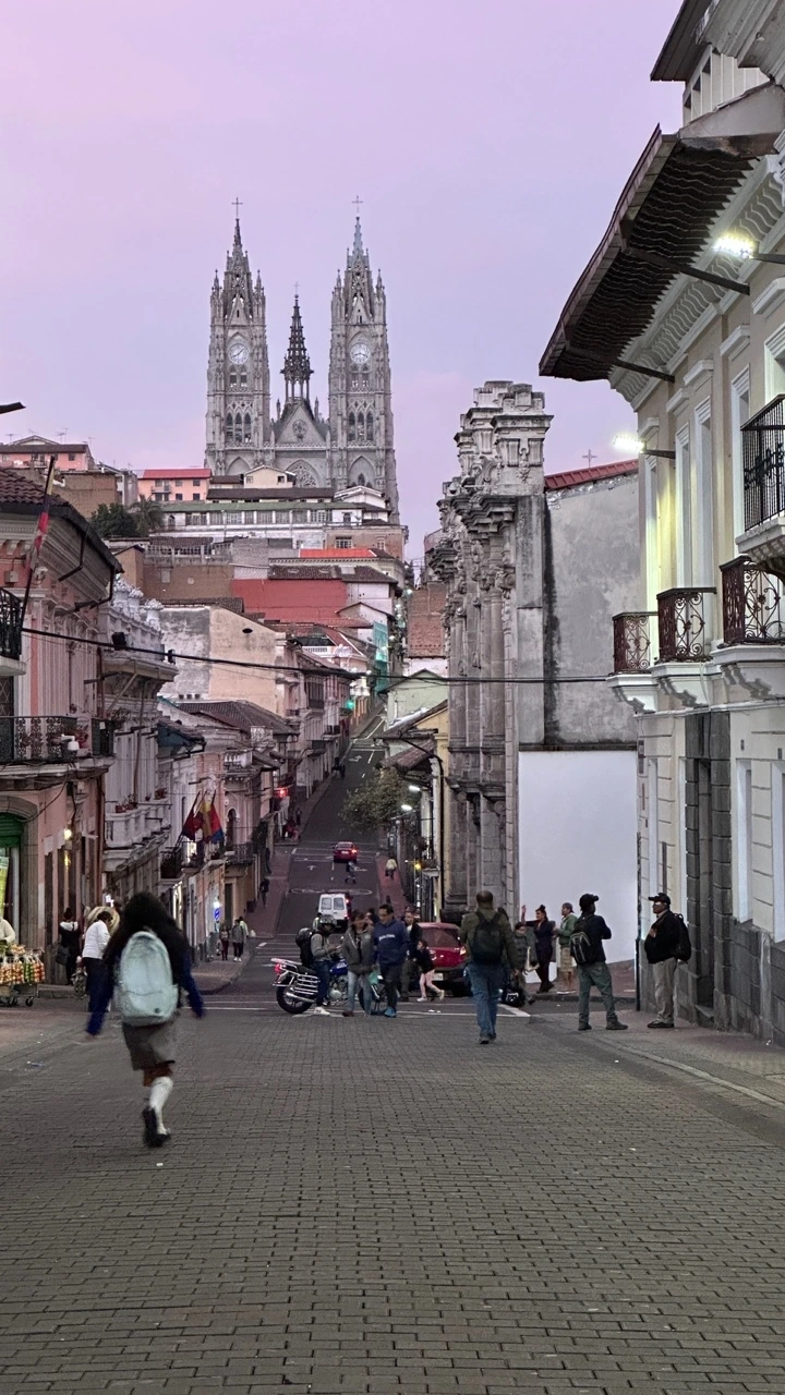키토에서는 달리는 트럭 위에 올라탄 마피아 집단이 총을 쏘아댄다는 괴담을 듣고 온 터라 다소 살벌한 풍경을 상상했건만. 웬걸, 지금까지 다닌 도시 중 손에 꼽히게 조경이 아름다웠다. 침 도착한 시간대가 잔잔한 어둠이 내리기 시작하는 오후였던 덕에 도시의 낭만적 분위기가 극대화된 이유도 있었을 것이다. 하지만 그를 감안하더라도 들꽃을 닮은 색들로 채색된 건물들과, 네모진 돌들로 정성스레 포장된 도로, 역사 깊은 건물 사이로 보이는 주변 산의 풍경, 바람을 타고 어디선가 솔솔 풍겨오는 풀향기까지 여행자의 가슴을 뛰게 하는 요소들이 넘쳐나는 곳이었다.