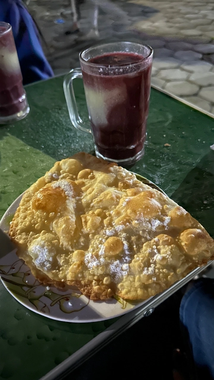 버스 터미널 근처에는 길거리 음식을 곳곳에서 팔고 있어 요깃거리로 좋다. 베리류의 과일을 갈아서 만든 듯한 따끈한 자줏빛 음료와 기름에 바삭하게 튀겨내 슈가 파우더를 뿌린 빵을 같이 시켜 먹었다. 조촐한 수레에 빵을 만들 재료를 담아 오신 동네 아주머니께서 낡은 팬에다 튀겨 주시는 소박한 빵일 뿐인데 눈이 번쩍 뜨일 정도로 맛이 좋았다. 결국 두 번 더 시켜 먹고 다음날에 또 먹었다.