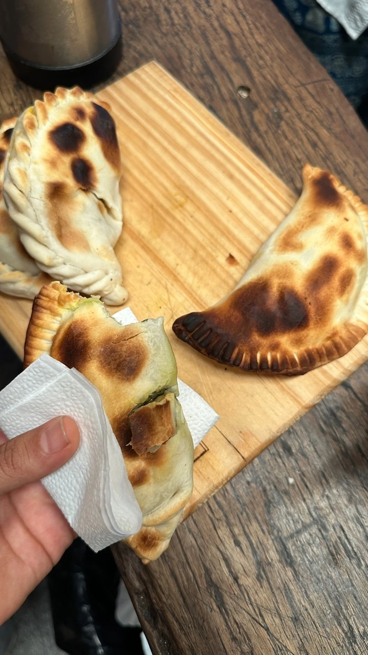 오래 걸었더니 배가 고파온다. 번화가의 먹자골목에 들어가면 빵과 생과일주스 같이 간단한 먹거리부터 고기구이까지 많은 선택지가 있다. 커피숍도 있어서 식사와 커피를 한번에 해결할 수 있는 장소이기도 하다. 우린 엠빠나다를 먹기로 했다. 엠빠나다는 만두처럼 생긴 빵 안에 고기나 야채나 치즈 등 여러 재료를 넣어 구워낸 빵이다. 소니아는 소고기, 남편은 양파치즈, 나는 고르곤졸라 치즈 엠빠나다를 시켜 나눠 먹었다. 개인적으로는 양파치즈가 달콤짭짤 고소한 것이 내 취향이었다. 아르헨티나에서 지겹도록 먹게 되는 것이 엠빠나다이지만 맛있다고 소문난 곳을 찾아가서 먹어보면 보통의 엠빠나다와 그 차이가 꽤 크니, 이왕이면 줄 서서 먹는 곳으로 가는 게 좋겠다.