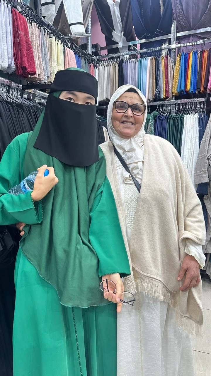구경하다가 어느 옷집에서 아바야(여성 드레스의 한 종류)를 구매하던 중 니캅(여성용 얼굴을 가리는 천)을 발견했다. 볼 때마다 한번 써보고 싶었는데 이 기회에 살짝 착용해 보았다. 거울을 보니 눈만 삐죽 나와 있어 어색하다. 자외선 차단으론 꽤 괜찮아 보인다.