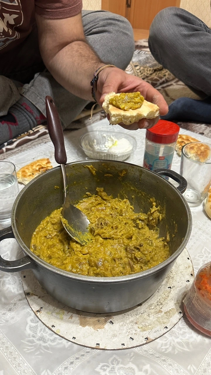 한번은 사디크가 이란에서 먹는다는 음식을 해줬는데 요리의 이름은 정확히 모르겠지만 야채만 들어갔는데도 그 맛이 참 좋았다. 양파, 가지, 요거트 등 들어간 재료가 많지도 않은데 풍부한 맛이 나서 빵에 얹어 먹기 괜찮았다. 사디크는 아내가 만들면 더 맛있다며 자랑스레 말했다.