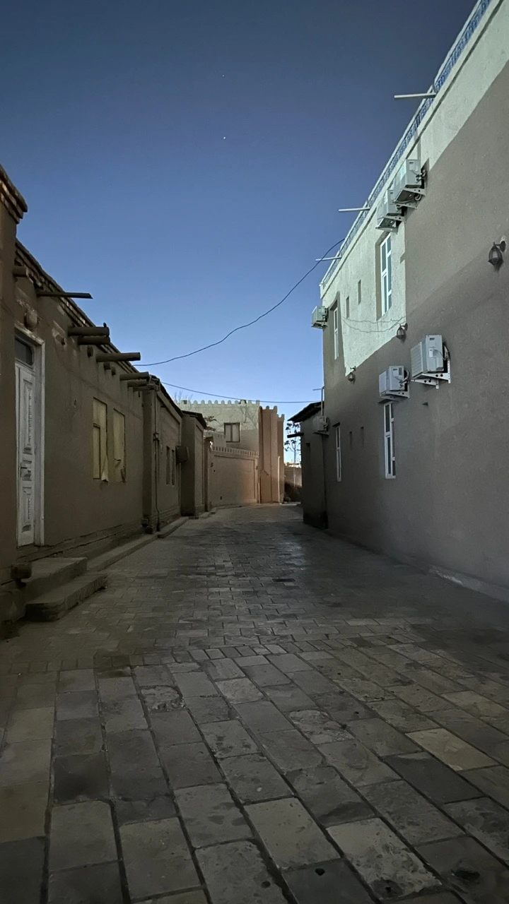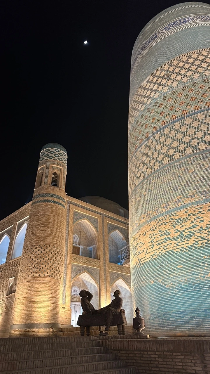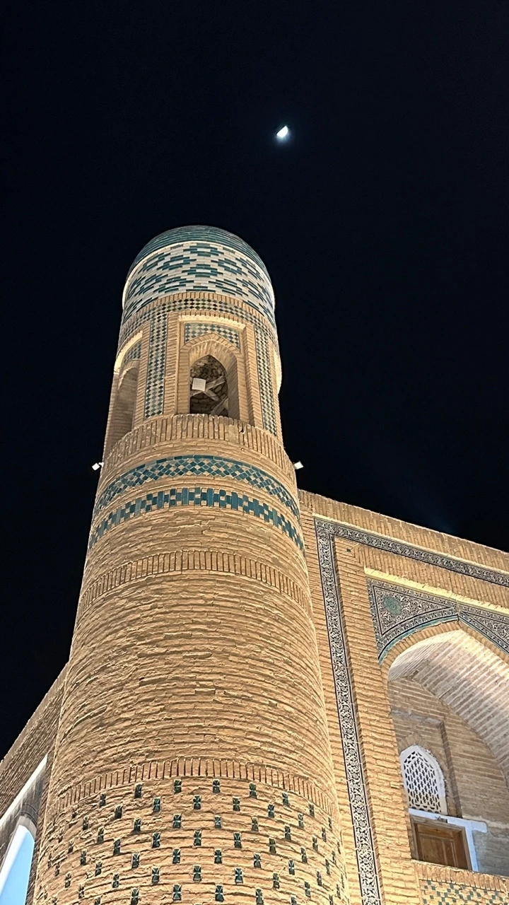 히바의 옛 모습을 간직하고 있는 구시가지는 '이찬칼라'라고 불리는 오래된 성 안에 있다. 히바에 있으면서 이찬칼라에 해가 진 후, 한낮, 그리고 해질녘, 이렇게 세번을 다른 시간대에 들어갔는데 나는 그중 밤에 보는 이찬칼라가 가장 좋았다. 조명을 받아 신비롭게 빛나는 흙벽, 투명한 빛을 뿌리는 환한 달 아래에 고고하게 서있는 미나렛 사이로의 고요한 밤산책은 꿈속을 걷는 것 같았다.