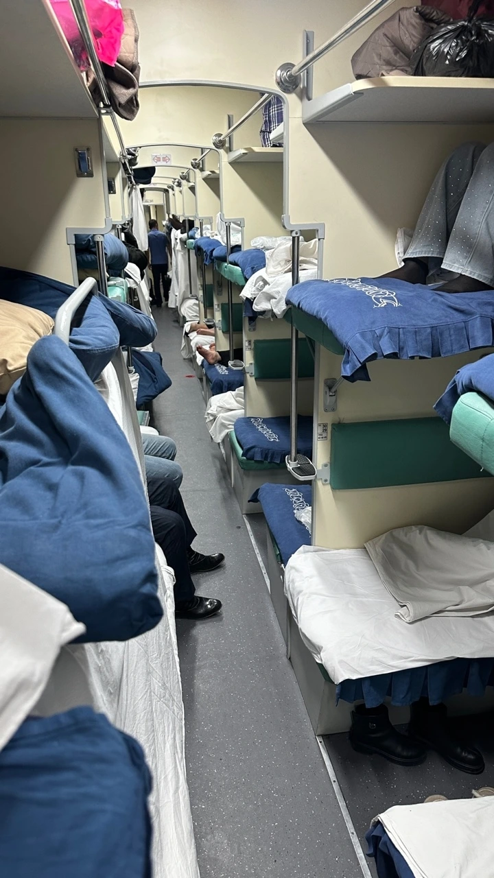 기차 안에서는 침대마다 뽀송뽀송한 침구커버를 나눠준다. 새하얀 커버를 씌워 이부자리를 만들고 그 위에 누우니 호스텔이 부럽지 않았다. 한 칸에는 일층에 세개, 이층에 세개씩 총 여섯개의 침대가 있었다. 우리 셋의 자리는 모두 이층이었다.