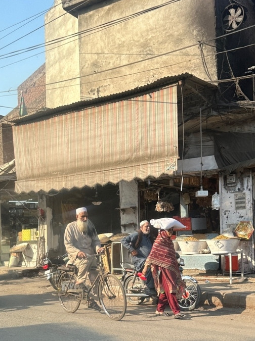 나시르 덕분에 우린 쾌적한 차 안에서 올드 라호르로 가는 길 내내 바깥 구경을 할 수 있었다. 올드 라호르에 가까워질수록 사람도 차도 바이크도 점점 더 많아져 교차로마다 서로 뒤엉켰다. 그런데도 누구 하나 부딪히는 일 없이 도로는 잘 돌아갔다. 셋, 혹은 넷이서 옹기종기 타고 달리는 바이크, 짐을 한가득 실은 수레를 맨몸으로 끄는 일꾼, 히잡을 쓰고 바이크 뒤에 다소곳이 옆으로 앉아 타고 가는 여인. 이 낯선 풍경들이 우리에겐 하나하나 사진 작품 같았다. 거의 모든이가 전통복장인 살와르 카미스(하의는 살와르, 엉덩이를 덮도록 길게 내려오는 상의는 카미스라 부른다)를 입고 다니는 것도 신기하고 이국적이었다. 우리나라 같으면 대부분이 한복을 입고 돌아다니는 것이나 마찬가지다. 파키스탄에선 공사장에서 일하시는 분들도 살와르 카미스를 입고 있었다. 그만큼 편하고 활동성이 좋은가 보다.
