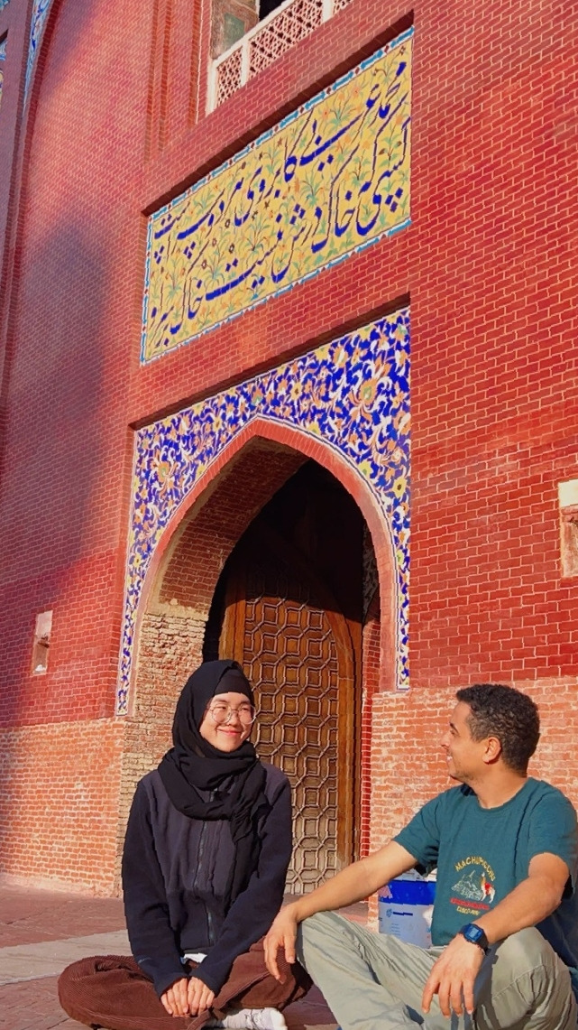 모스크 앞에서 그림에 열중하는 미대생