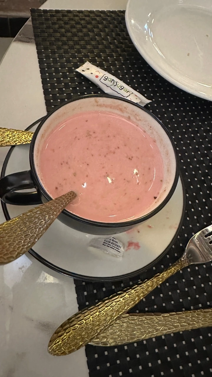 카페에서 시킨 분홍빛 카슈미르 티. 카락티와 비슷한데 견과류가 섞여 한층 고소한 맛이 났다.
