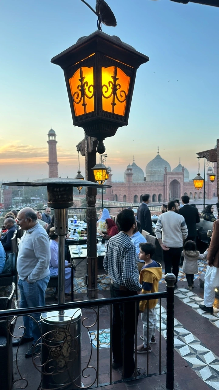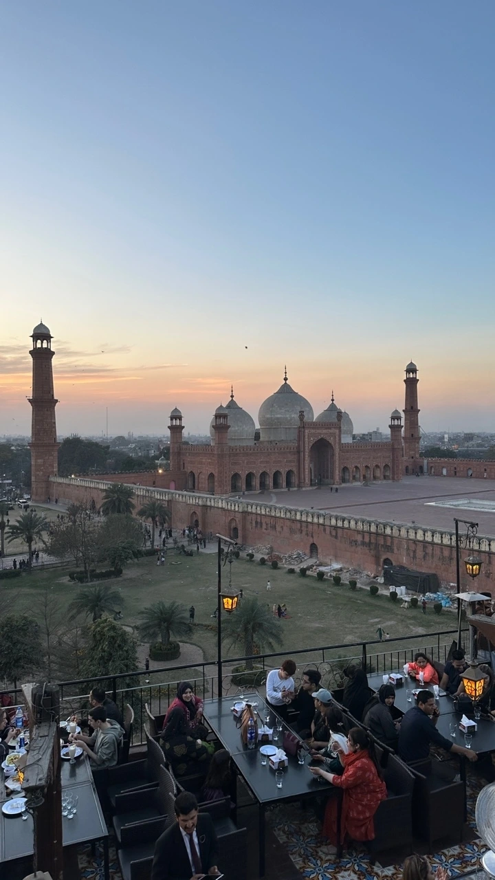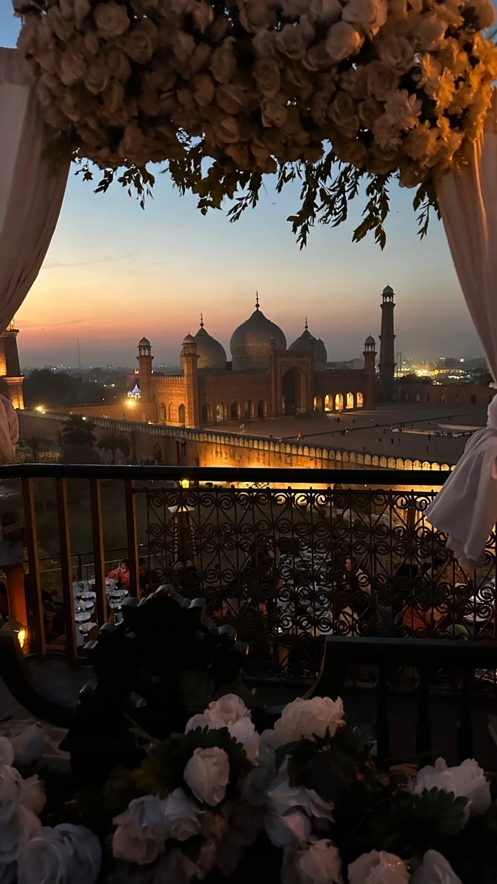 레스토랑의 루프탑에 올라서자 무굴제국의 걸작이라 하는 바드샤히 모스크의 웅장하면서도 운 자태가 드러났다. 해넘이에 맞춰서 도착하니 은은한 자줏빛의 모스크와 주홍빛 하늘이 파노라마처럼 이어져 황홀한 풍경을 만들었다. 이토록 전망이 뛰어나다 보니 이 루프탑에서 결혼식을 하려는 커플들이 줄을 선다고 한다.