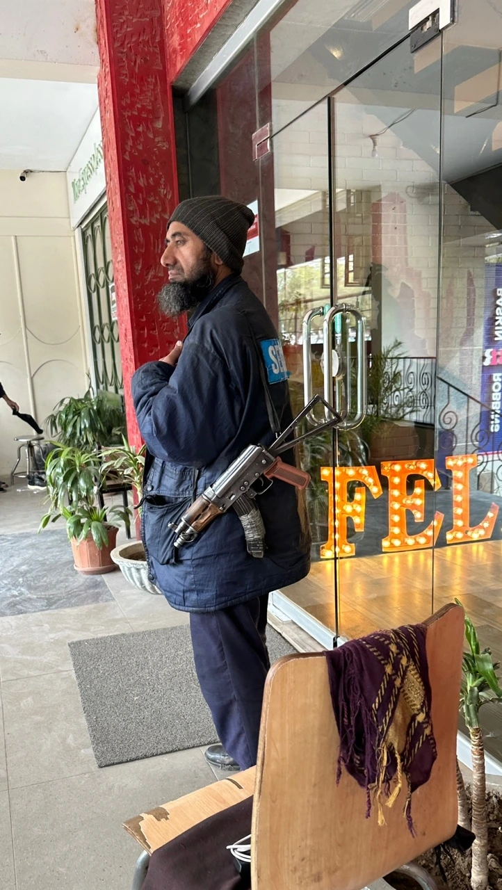 어딜 가나 총은 기본으로 갖춘 경비인력이 상시 배치된 매장들.