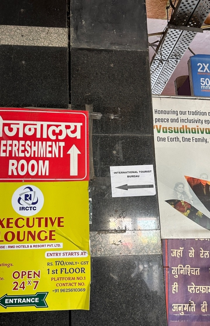 델리에서 자이푸르로 이동하기 위한 기차표를 사러 역으로 갔다. 기차역에 들어서면 눈에 띌락 말락 벽에 붙어 있는 'International tourist bureau'라는 글씨가 보인다. 그 화살표를 따라가면 이렇게 외국인 전용 티켓구매소가 나온다. 이곳으로 곧장 들어가면 역에서 헤맬 일도 없고 비싼 가격에 표를 팔려는 사기에 당할 일도 없이 안전하게 표를 구매할 수 있다. 정보 수집에 철저한 한국 여행자들은 이미 다 알고 있는 내용일 수도 있겠다.