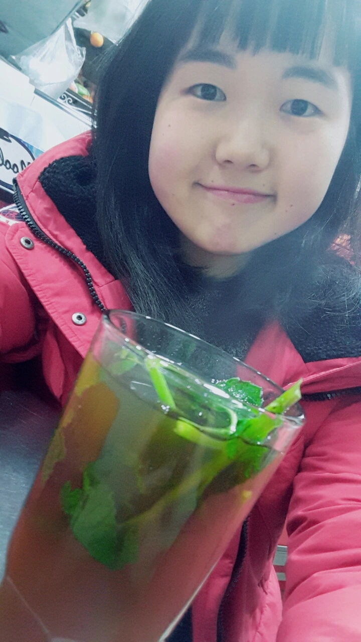 허브티와 함께 찰칵. 짧게 올라붙은 앞머리가 지금보니 귀엽다.