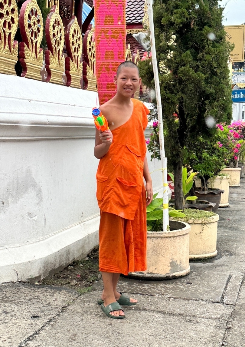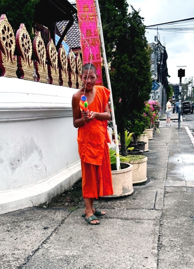 송크란이 되면 절은 성스러운 기도의 공간인 동시에 축제의 장으로 변모한다. 지나가는 우리에게 절 앞의 어린 스님이 장난기 어린 눈으로 웃으며 물총을 쏜다. 절 안의 뜰에는 푸드코트와 각종 문화체험 공간이 조성되고, 한쪽에는 무대와 관중석이 마련되어 신자들과 방문객들이 음악을 감상할 수 있다. 오늘은 절 안에 불경이 아니라 밴드음악과 웃음소리가 울려 퍼진다.