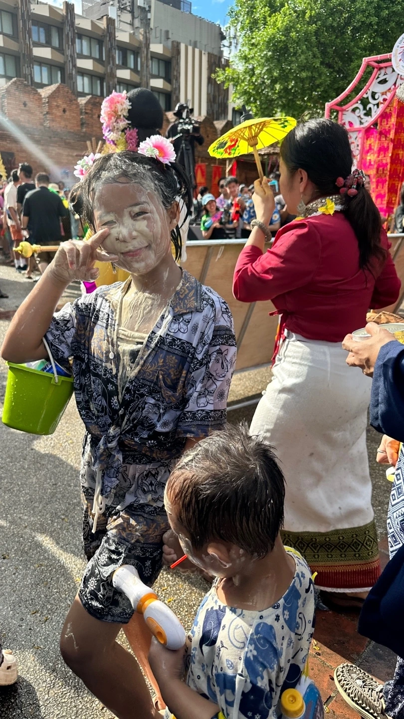 종종 서로의 얼굴에 진흙을 발라주는 람들도 보인다. 작은 바가지에 하얀 진흙을 들고 다니며 지나가는 아무에게나 다가가 얼굴에 살포시 발라주기도 한다. 이 역시 물을 뿌리는 것과 비슷하게 액운을 쫓고 새해의 다복 기원하는 의미가 담겨있다고 한다. 길거리에서 머드를 파는 포장마차를 쉽게 찾을 수 있으니 직접 만들어 발라보아도 좋고, 그게 아니면 동네만 한 바퀴 쓱 돌아도 사람들이 너도나도 다가와 발라주어 얼굴에 하얀 머드칠을 할 수 있다.