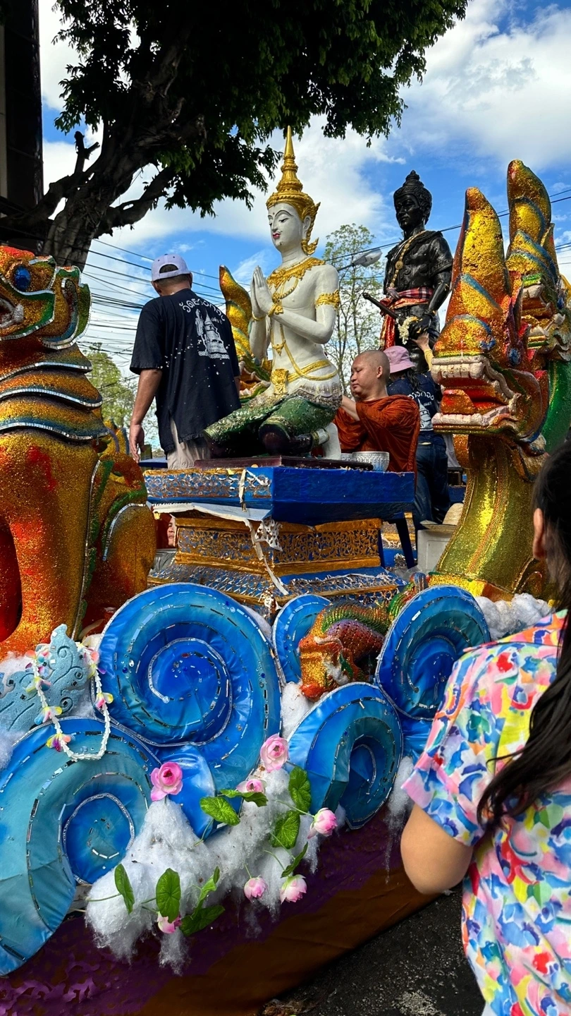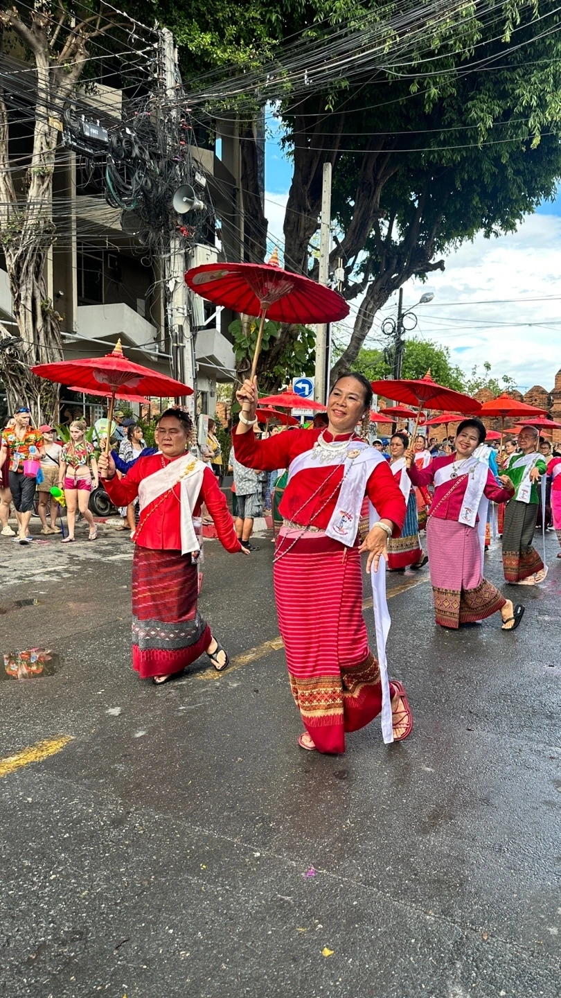 물놀이와 함께 다양한 퍼레이드도 진행된다. 전통옷을 갖춰 입고서 다소곳하게 춤을 추고, 색색의 꽃으로 장식하고 악기를 연주하며, 치앙마이와 그 인근의 여러 사원들에서 각자 부처상을 모셔와 행진에 참여하기도 한다. 지켜보는 사람들은 새해의 복을 기원하며 행렬에게 물을 뿌리기도 한다. 이날만큼은 행렬 속의 부처상에도 물을 뿌는 것이 허용된다.