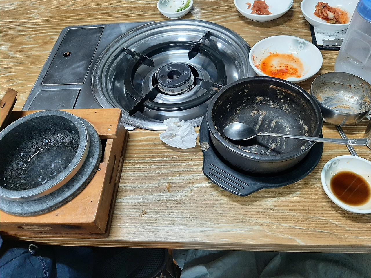 뚝배기를 기울여 바닥에 깔린 국물을 구멍낼 기세로 긁어 먹고 공기에 붙은 마지막 밥 한알도 떼어먹고 잘 불어난 누룽지까지 후루룩 마셨다. 한 방울도 안 남기고.