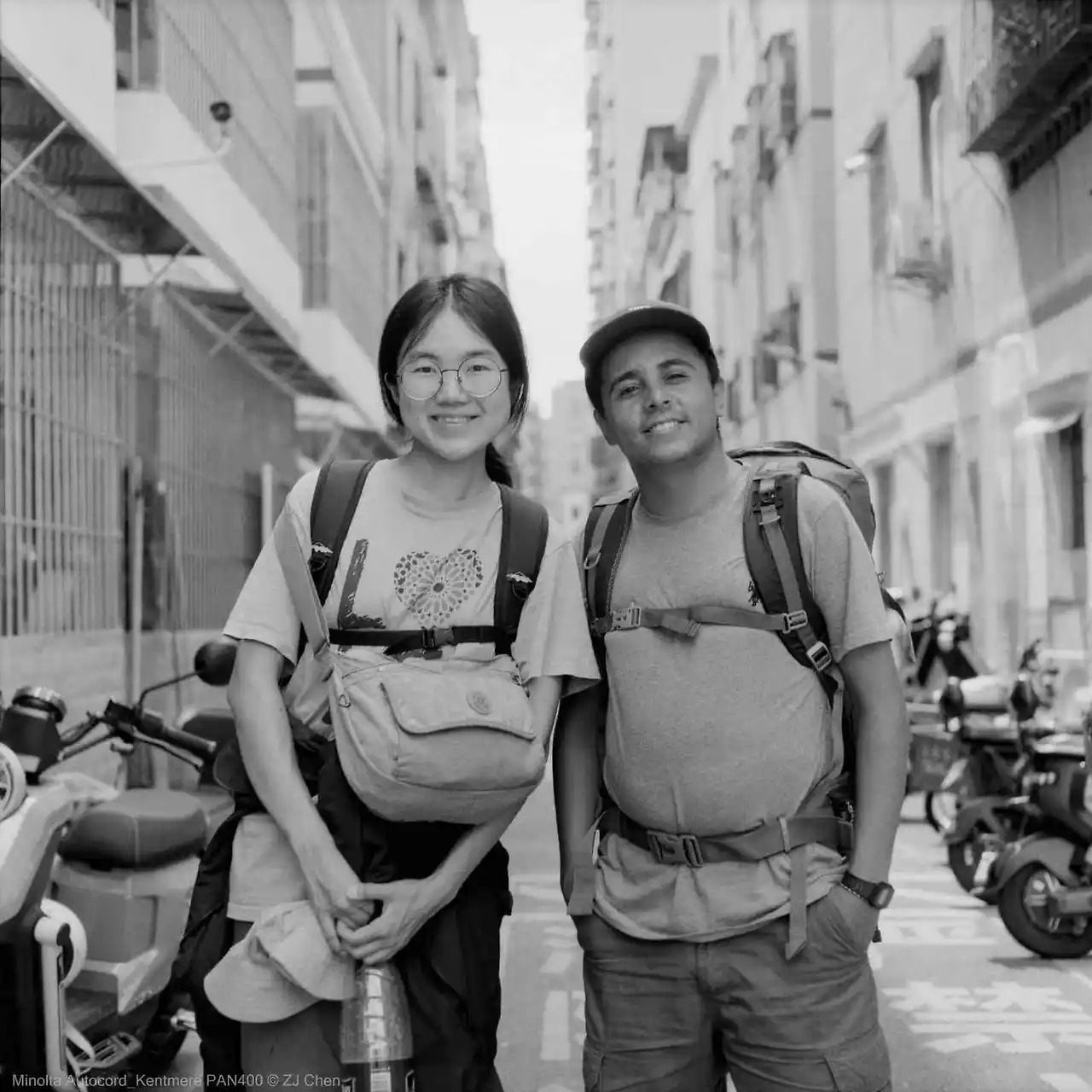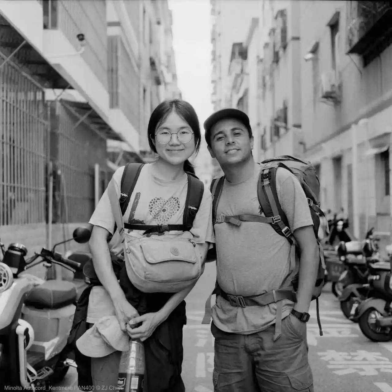Z는 집 앞 골목에 배낭을 메고 선 우리를 카메라에 담았다.