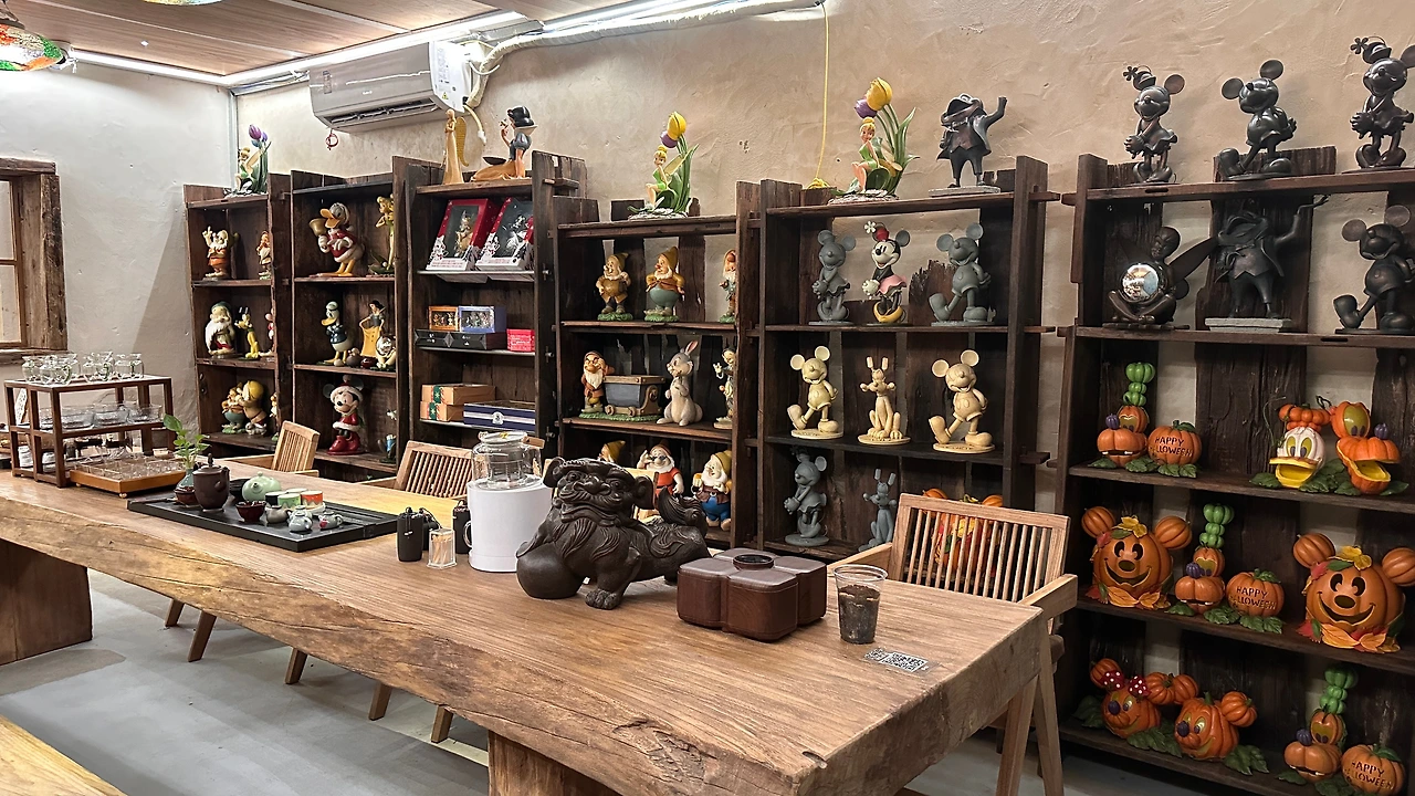 걷다가 들어간 어느 카페에는 전통적인 가구와 인형, 도자기, 장식품들이 빼곡히 전시되어 있었다.