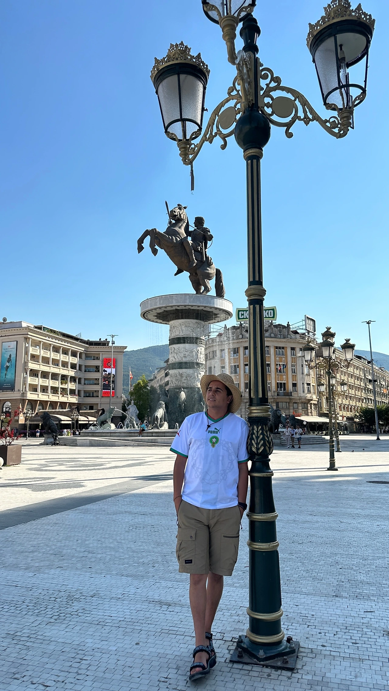 베오그라드도 울고 갈 더위에 마케도니아 광장엔 이글이글 아지랑이가 피어오른다. 해가 정수리에서 조금 내려올 때까지 실내로 피신을 해야 할 것 같다. 카우치서핑에서 알게 된 한 모로코 여행자가 우리와 같은 시기에 스코피예를 방문하여 같이 시간을 맞춰 만나기로 했는데, 그가 마침 이 광장의 한 레스토랑에 와 있다고 하여 곧장 그를 만났다.