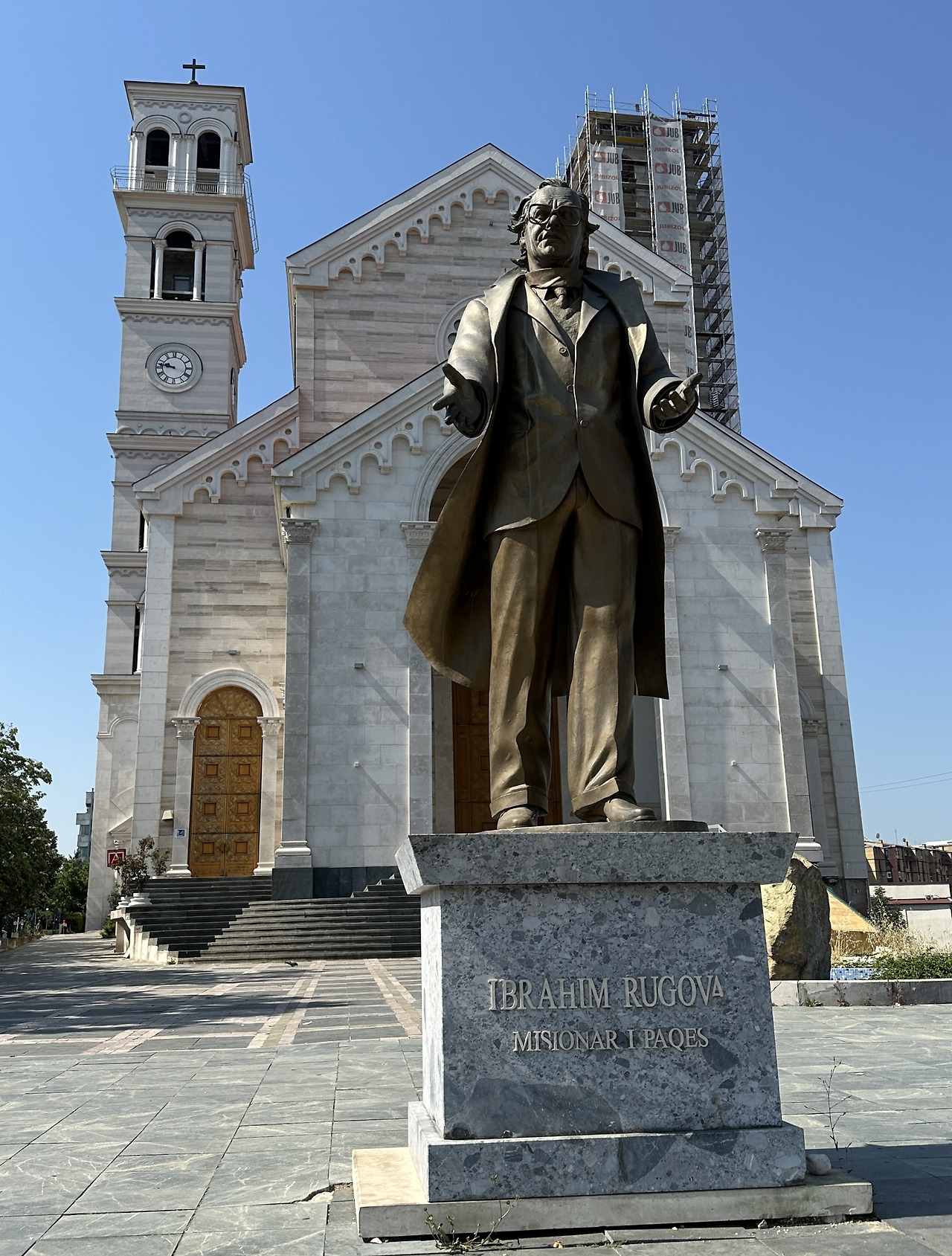 긴 광장의 한쪽 끝에는 성 마더 테레사 대성당이 있다. 대성당이지만 소박한 외양의 이 성당은 순백의 건물과 값비싼 장식 없는 내부가 일평생을 빈민가에 바쳤던 마더 테레사의 삶을 닮은 듯하다. 마더 테레사의 고향은 얼마 전 우리가 거쳐온 북마케도니아의 수도 스코피예이다. 그런 그녀의 이름을 딴 성당이 이곳 프리슈티나에 세워진 이유는 코소보인들(인구의 90% 이상이 알바니아계)이 그들과 같은 알바니아계인 마더 테레사를 같은 민족으로서 자랑스럽게 여기기 때문이다. 성당 앞에는 코소보-세르비아 전쟁 당시 비폭력 평화운동을 이끌었던 독립투사이자 코소보의 초대 대통령이기도 했던 이브라힘 루고바의 동상이 광장을 마주 보며 서 있다.