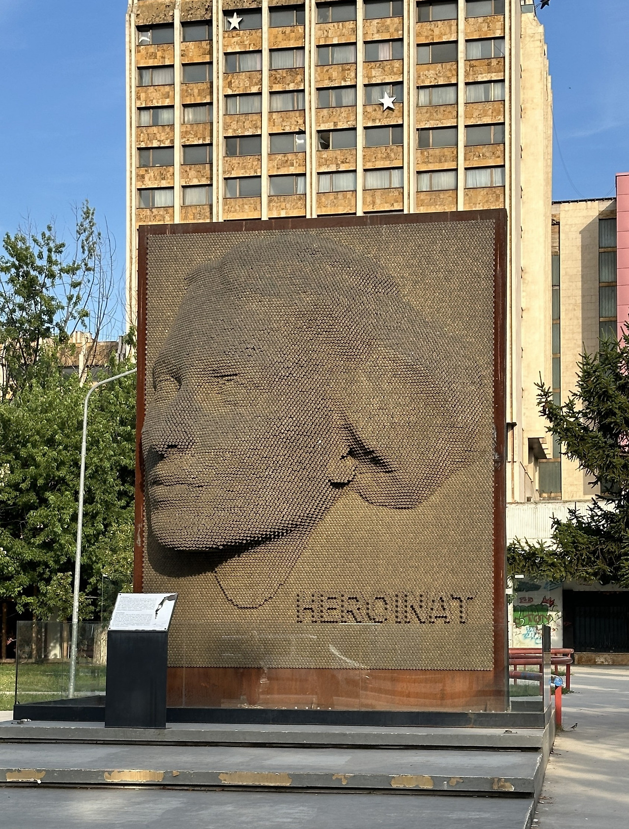 광장에 독특한 제작 방식으로 단연 눈에 띄는 조형물이 있었다. 이 커다란 얼굴에는 'heroinat'라는 이름이 붙었다. 알바니아어로 여성 영웅들이라는 뜻이다. 약 2만 개의 금속핀을 이용해 여성의 얼굴을 입체적으로 표현한 이 작품은 코소보 전쟁 때 세르비아군에 의해 성폭력을 당했던 2만 명의 코소보 여성들을 기리기 위한 것이다. 가까이서 보면 핀 하나하나에도 여성의 얼굴이 새겨져 있다. 이를 보며 세르비아에 대한 코소보의 반감이 어떤 것일지 상상해 볼 수 있었다.