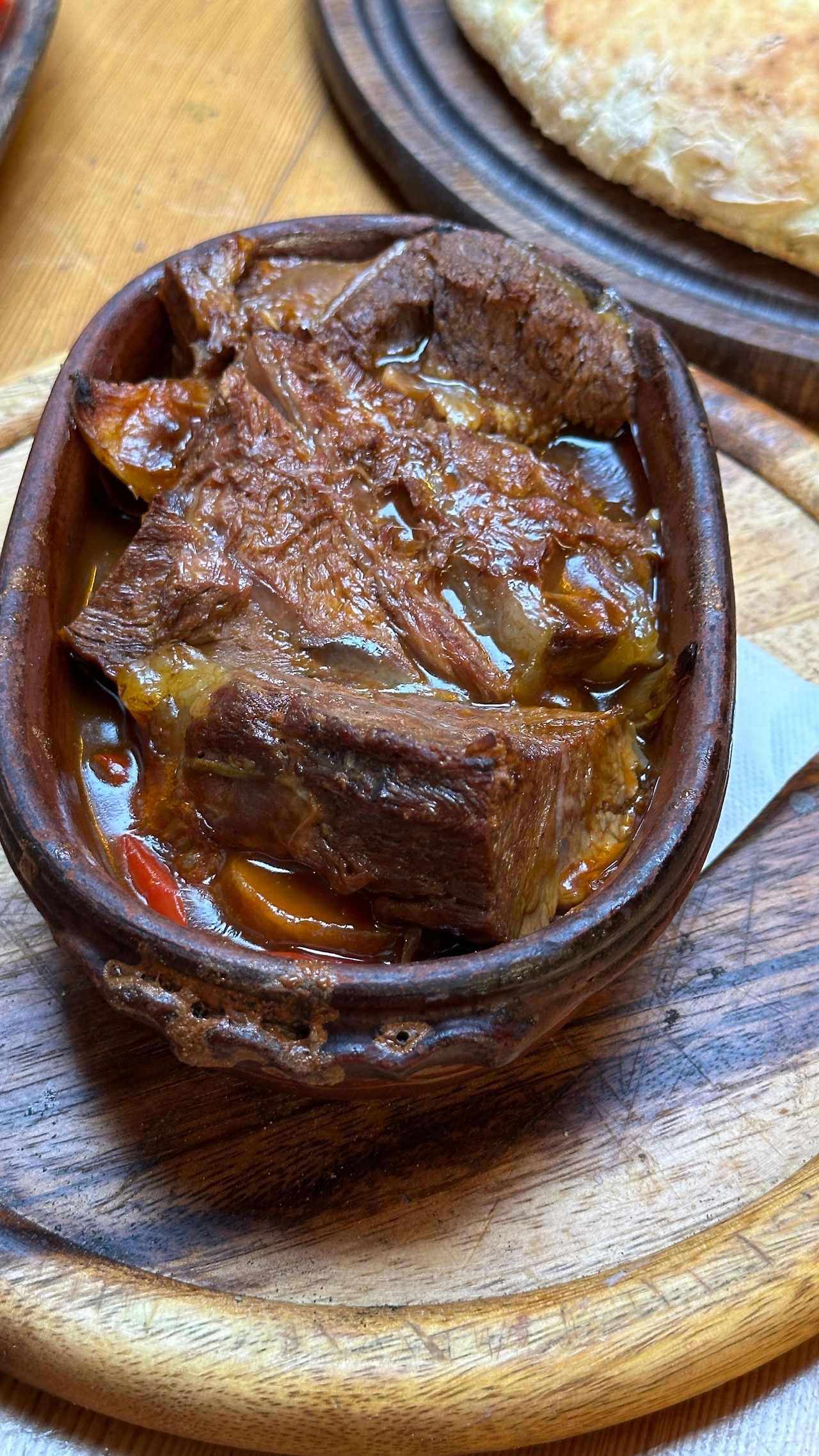 솔직히 가성비로 치면 코소보의 소고기 요리를 따라갈 나라가 몇 없지 않을까 생각한다. 프리슈티나에 도착하여 처음으로 먹은 음식이었던 소고기 타버(tavë)는 큼직이 썬 고기와 야채를 도자기 용기에 익힌 발칸식 캐서롤이었다. 배가 고팠던 걸 감안하더라도 타버의 맛이 아주 좋았던 기억이 난다. 모로코의 소고기 타진이나 우리나라의 갈비찜을 떠올리게 하면서도 양념이 너무 튀지 않으면서 소고기 고유의 진득한 향이 입에 착 감기는 맛이었다. 같이 주문한 소스는 상큼한 치즈와 매콤달큰한 피망의 조합이었다. 빵을 작게 뜯어 타버와 치즈소스와 함께 먹으니 눈이 절로 스르륵 감겼다. 놀라운 건 이 모든 게 10유로 남짓이었다는 것.