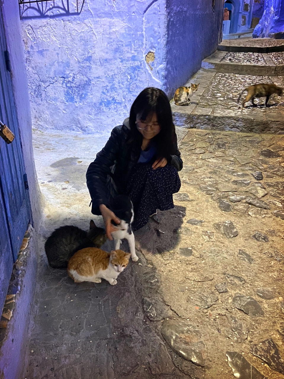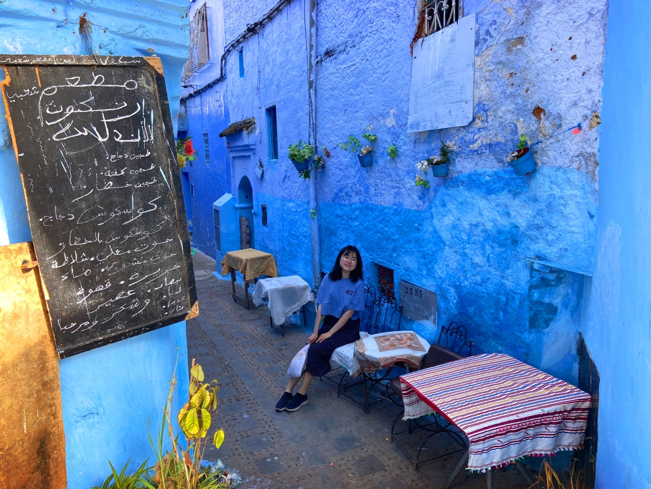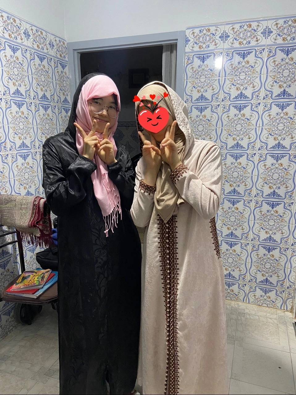 하나와 함께. 입고 있는 옷은 모로코 전통 의상인 젤라바, 머리에 쓴 것은 히잡.