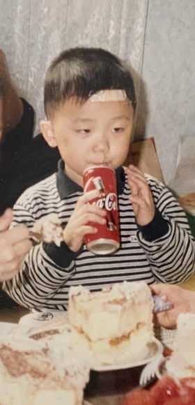 오른쪽 사진은 앨범에서 찾은 오래된 사진 중 하나이다. 기억은 안 나는데 분명 뭐 마음에 안 드는 게 있어 울면서 머리를 땅바닥에 박았을 것이다. 이런 내 모습이 익숙한 부모님은 태연하게 머리에 밴드를 붙여줬을 것이다. 그리고 콜라랑 케이크를 먹이게 한 거 같다. 그러자마자 바로 울음을 멈추고 웃으면서 맛있게 먹는 내 모습을 본 부모님은 어떤 마음이셨으려나