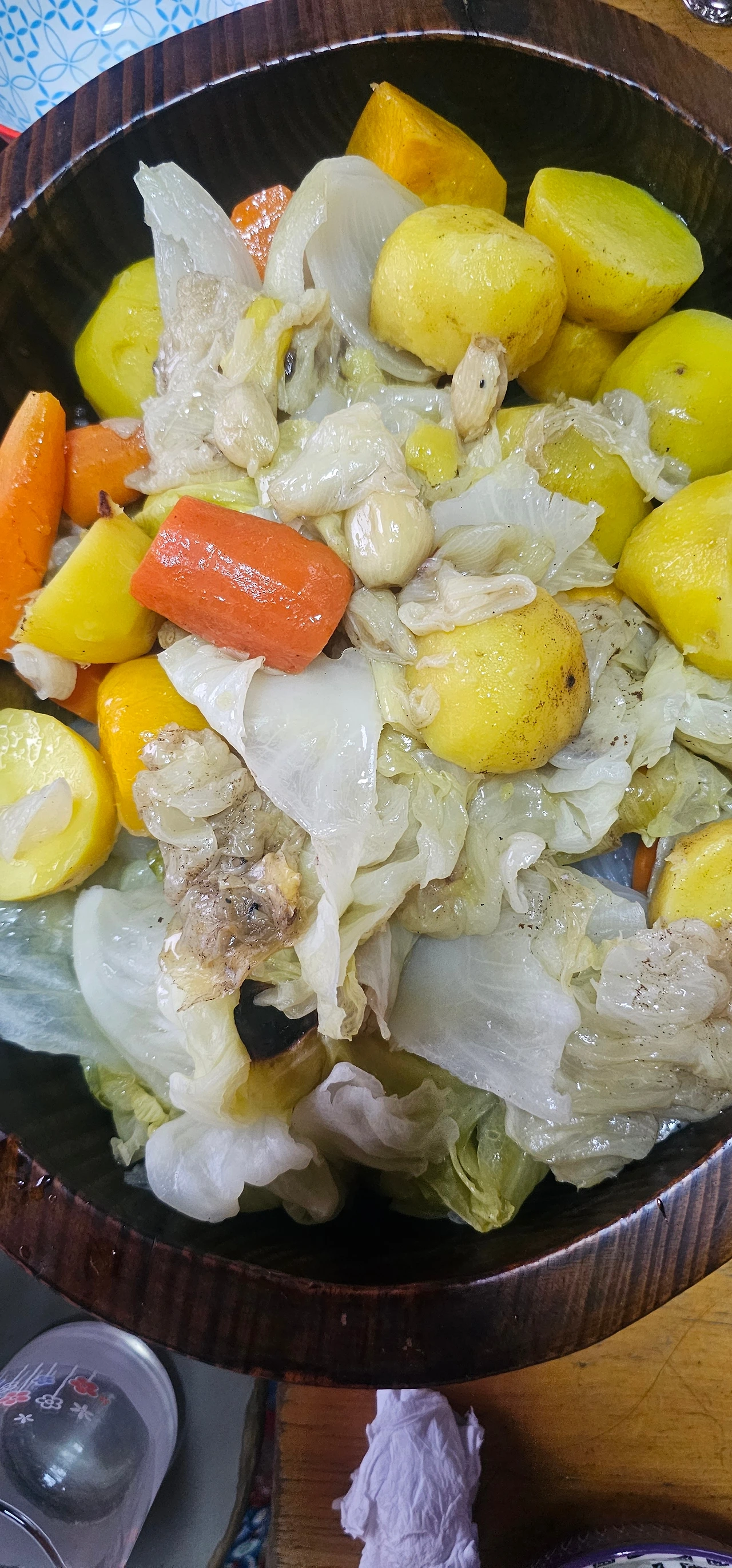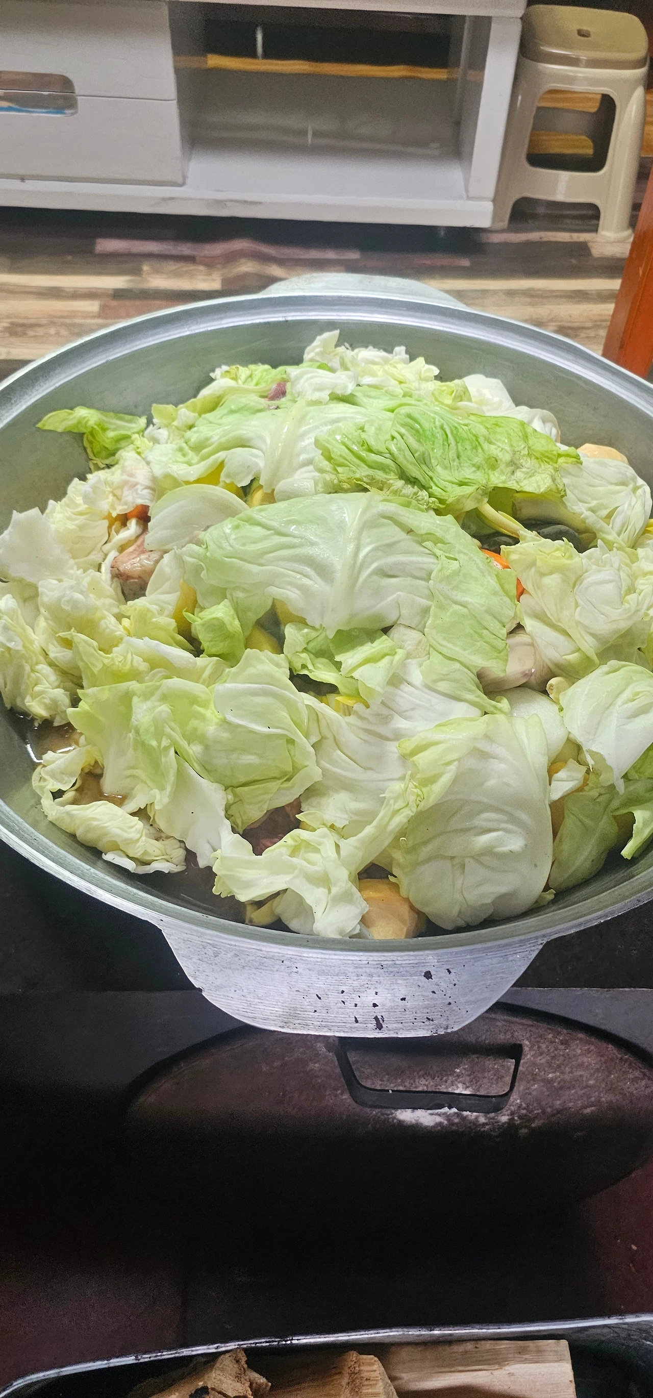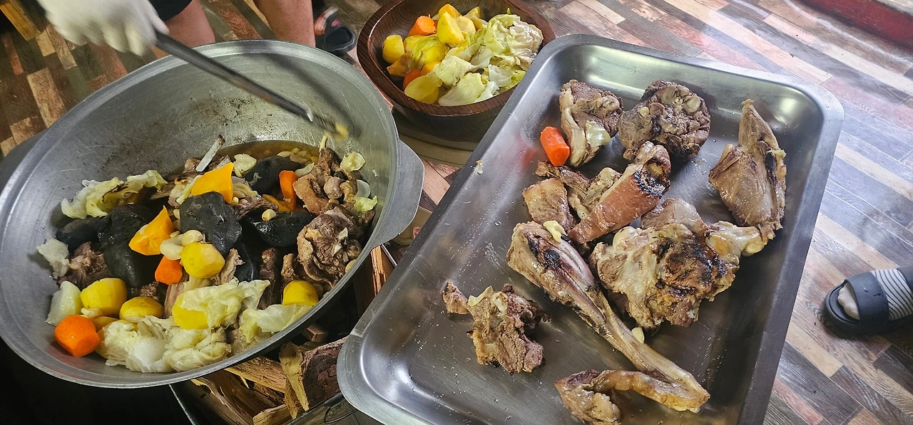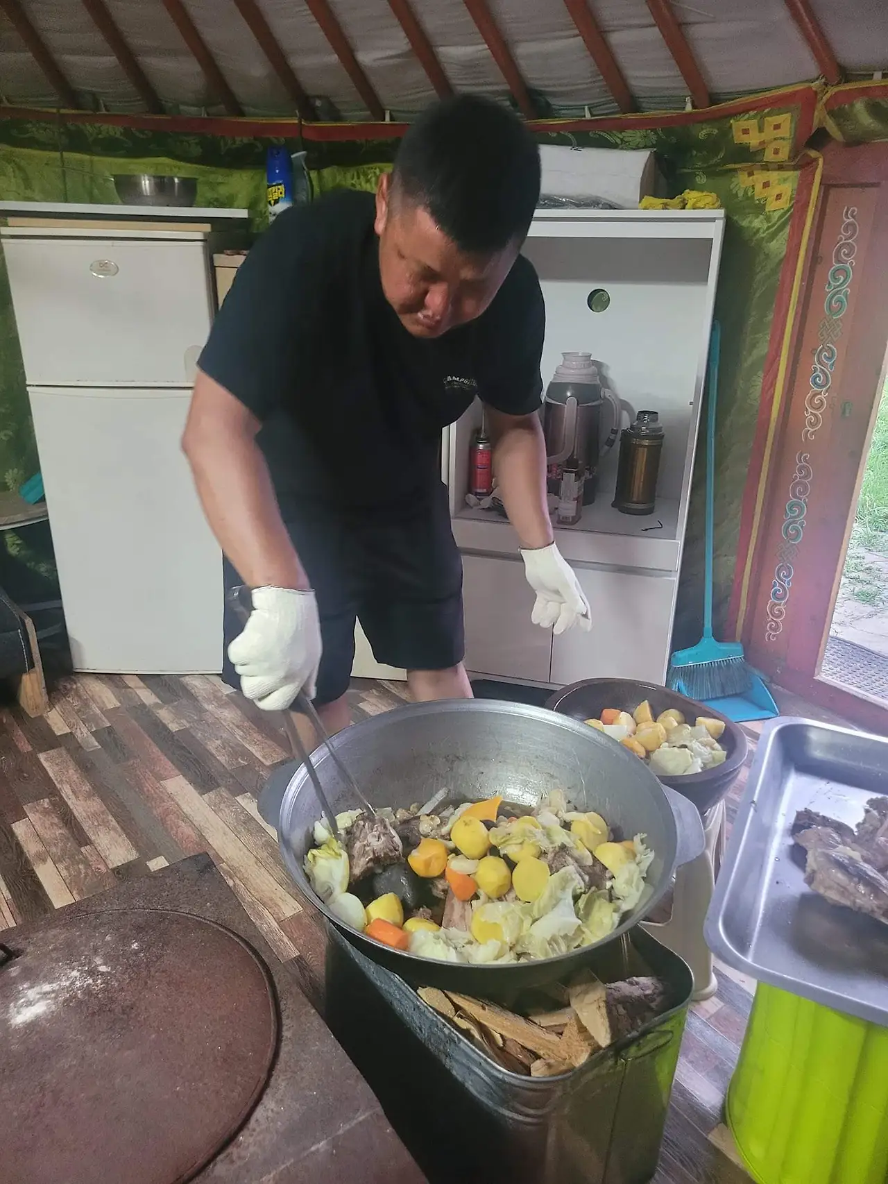 보통 허르헉은 양고기로 하는데 이번엔 한국 사람들이 염소를 더 귀히 여기는 것 같아 염소로 준비했다고 한다. 양배추, 당근, 감자, 러시아 무 등 야채를 넣고 요리한 고기는 부드럽고 야채들 중 특히 러시아 무가 고구마처럼 노란색인데 식감이 일반 무랑 다르게 맛있어서 나는 주로 무랑 고기를 같이 먹었다.