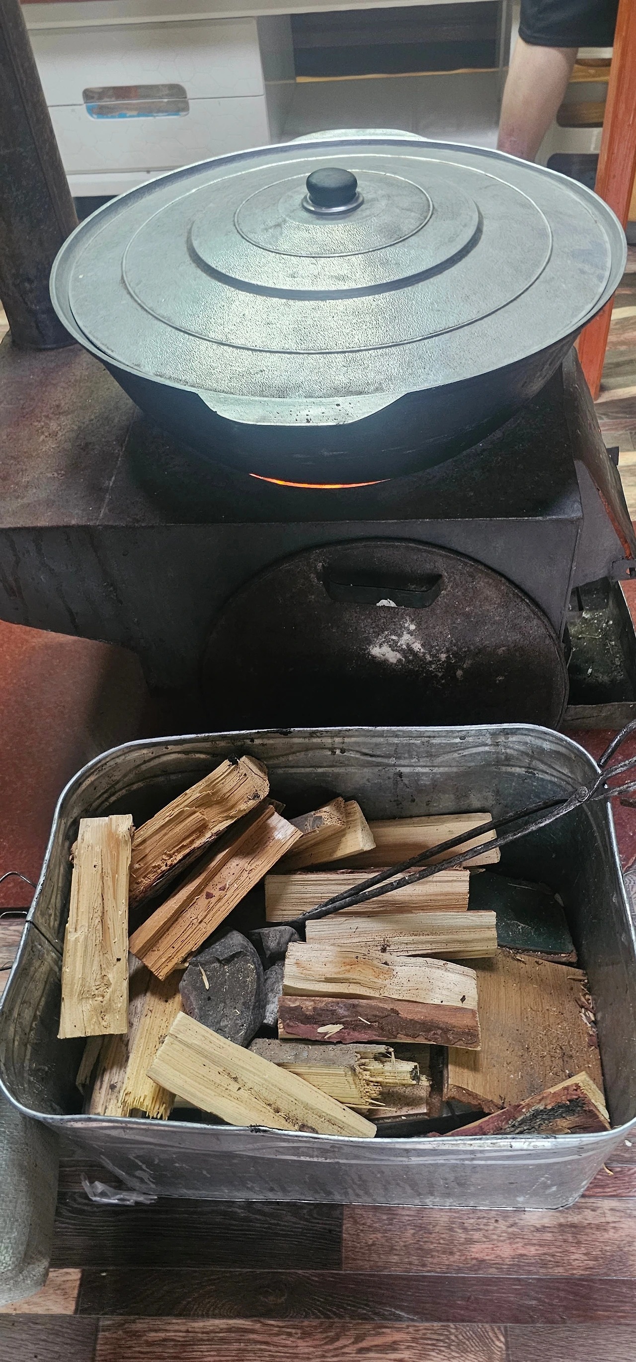 보통 허르헉은 밖에서 요리한다는데 이 날 미나 씨 남편은 게르 안에서 하고 있었다 ~ 음식재료 앉힌 모습