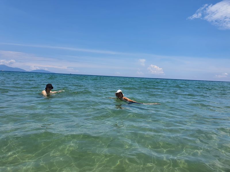 다낭에서 호이안으로 택시를 타고 이동했다. 5개월 동안 혼자서 일정 짜느라 바빴는데, 오늘은 새벽부터 열심히 일정을 짠 남편 덕분 에 느긋하게 안방비치(An Bang Beach)를 즐겼다. 정말 안방처럼 편안한 비치였다. 한국의 여름 바다는 시원하면서도 차가운데 이곳은 그냥 온수 수준이다. 수영을 하다 쉬면서 코코넛 스무디를 마시는데, 5분 간격으로 찾아와 패러세일링을 권하는 직원 말에 못 이기는 척 예약을 했다.