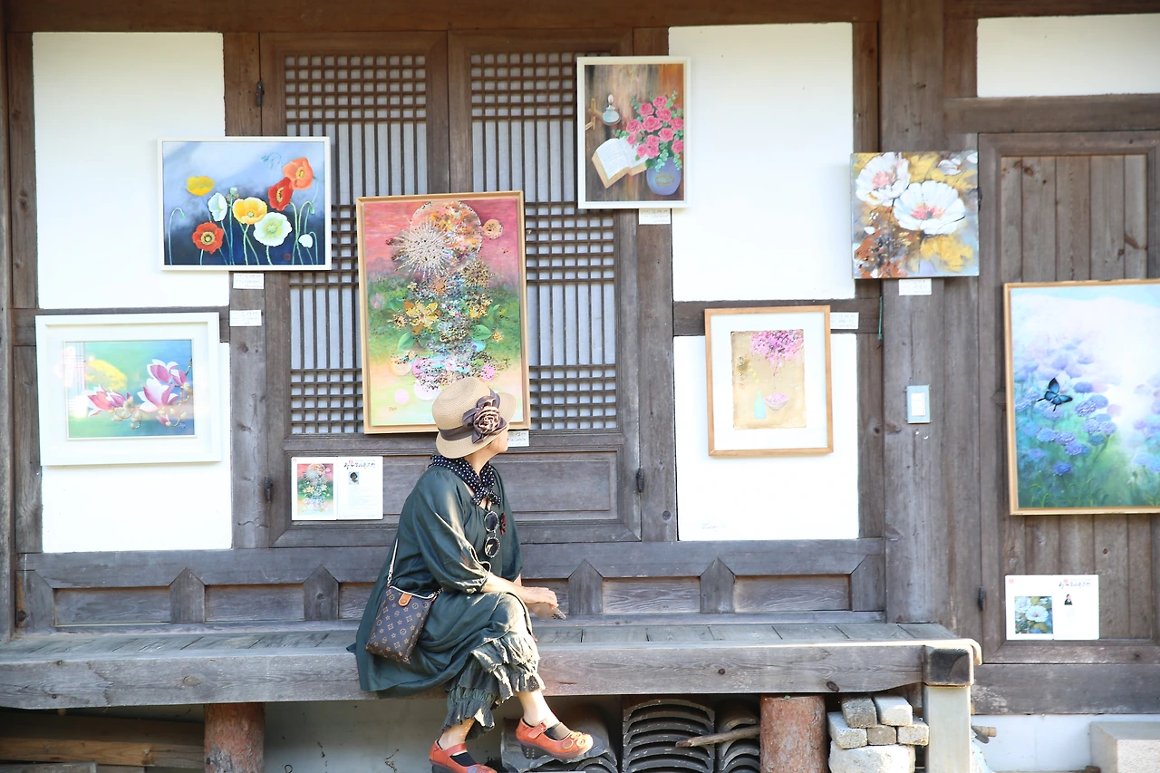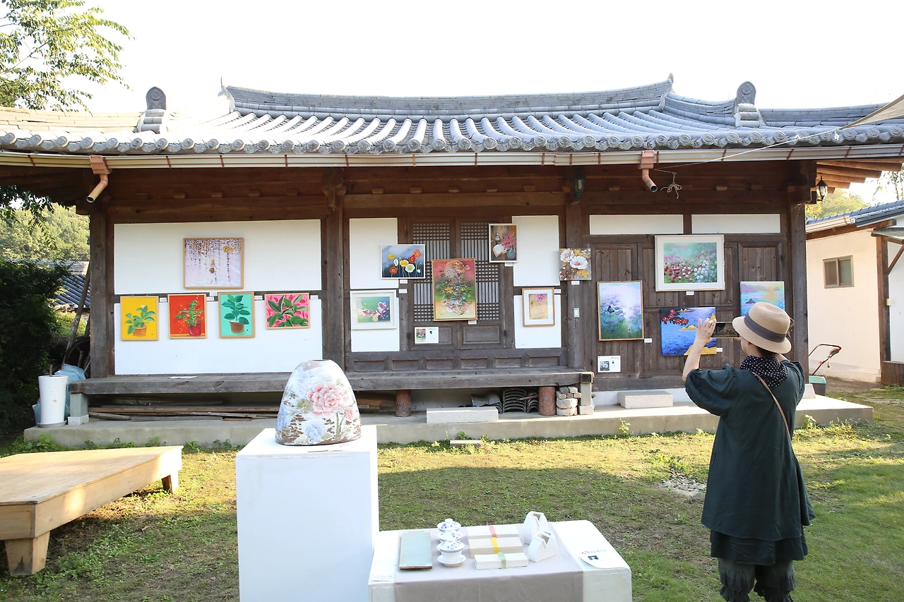 마침 풍천 노 씨 종갓집에서 전시회가 있어 바깥 황금들판의 수확뿐아니라 사람들의 노고의 작품을 함께 볼 수 있어 더 좋았다.