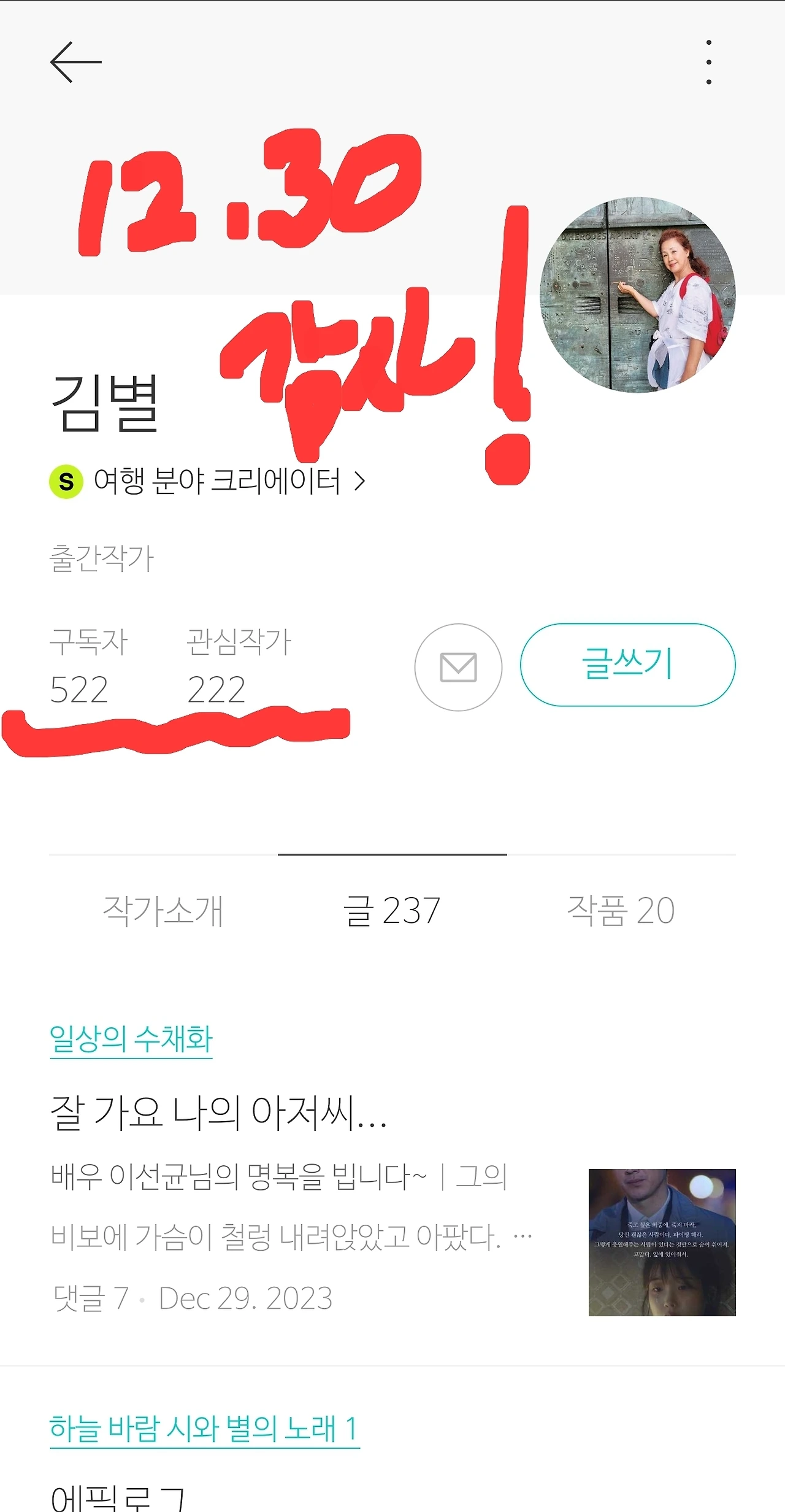 그런데 며칠 전 구독자 수 500을 넘기고 글을 쓰는 지금 이 순간 보니 구독자 수 522명이다. 너무나 감사한 일이다. 내가 구독하는 작가님들 숫자는 222명이다. 나는 웬만큼은 맞구독하는 편인데 나의 구독자님들은 주로 대부분 아직 글을 쓰지 않는 순수 독자님들이 더 많다.
