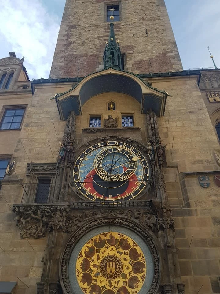 그렇게 보고 걸어 나와 프라하 구 시청 광장으로 왔다. 구 시청사의 볼거리는 세계에서 3번째로 오래되었다는 프라하 천문시계다. 지구를 중심으로 천체가 돈다는 천동설에 기초해 만들어졌는데 아직도 정확히 가동하고 있다. 오전 9시부터 밤 11시까지 매시 정각에 천문시계쇼가 펼쳐지는데, 인형이 종을 치는 것을 시작으로 예수의 12제자와 여러 인형들이 움직이는 모습을 볼 수 있다.