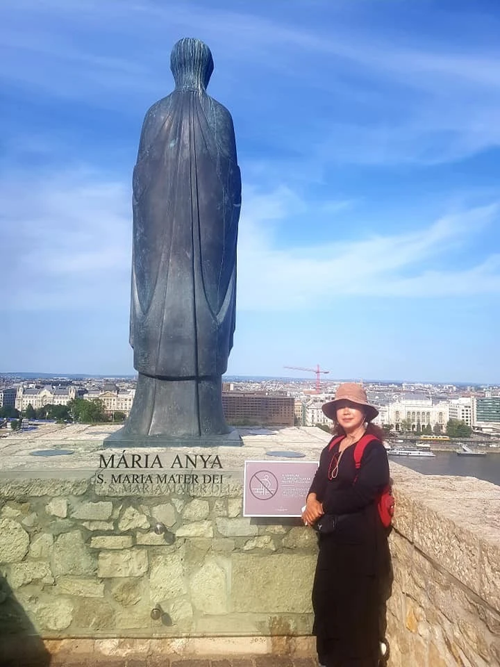 부다성 아래 반대편에서 얼굴이 보이는 마리아 상
