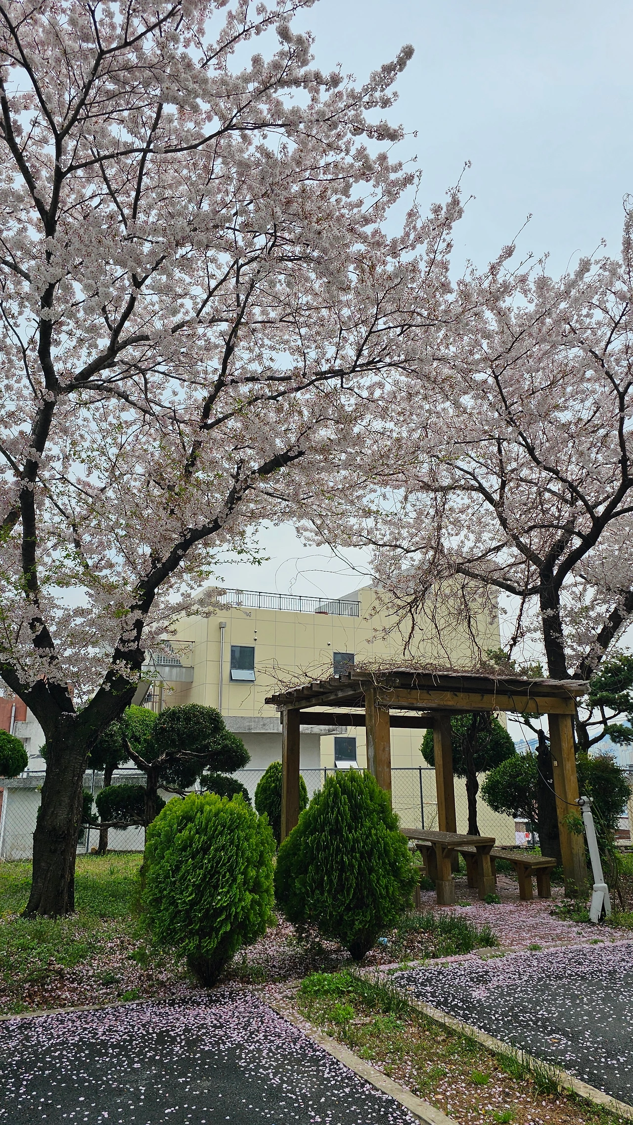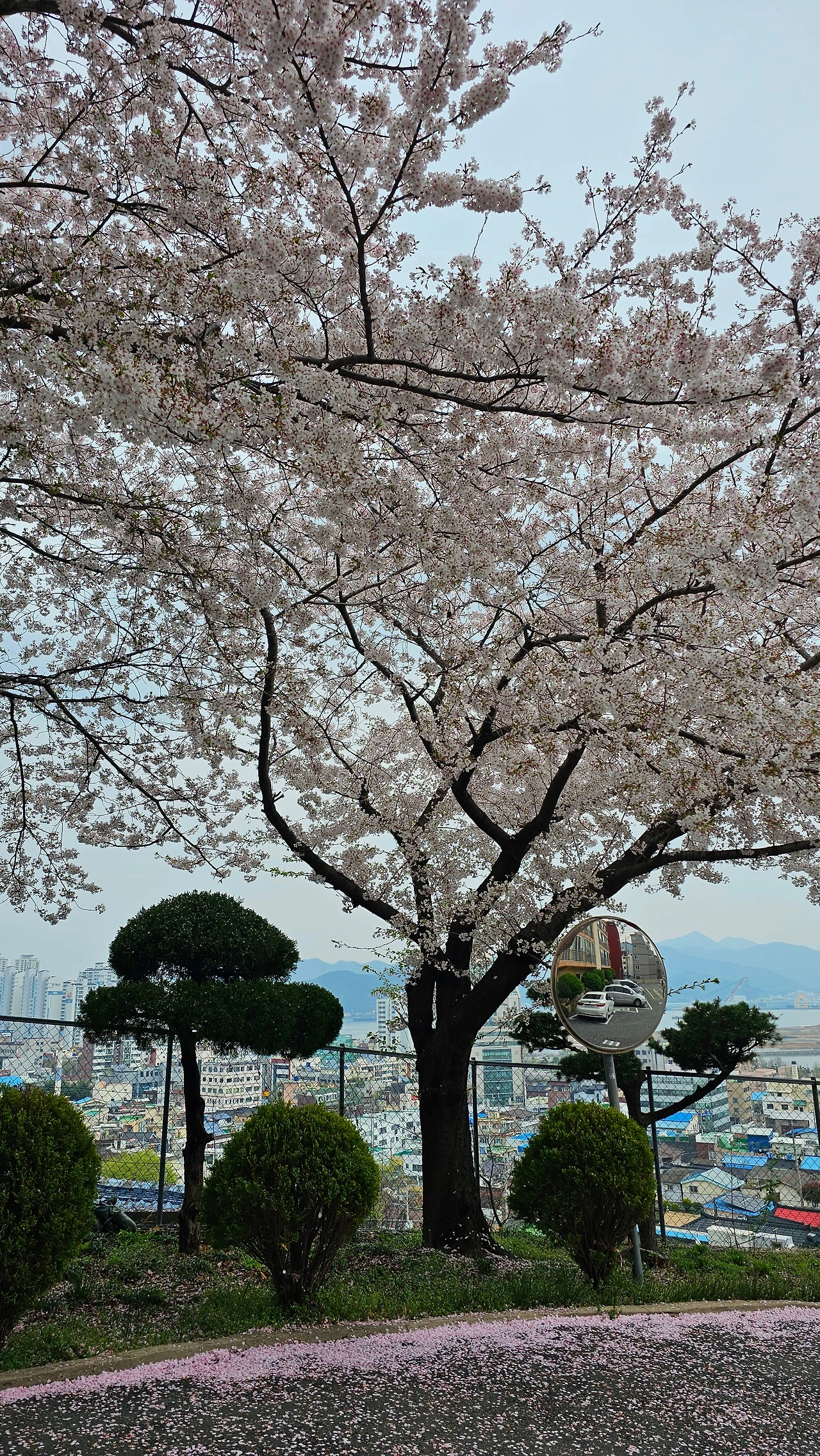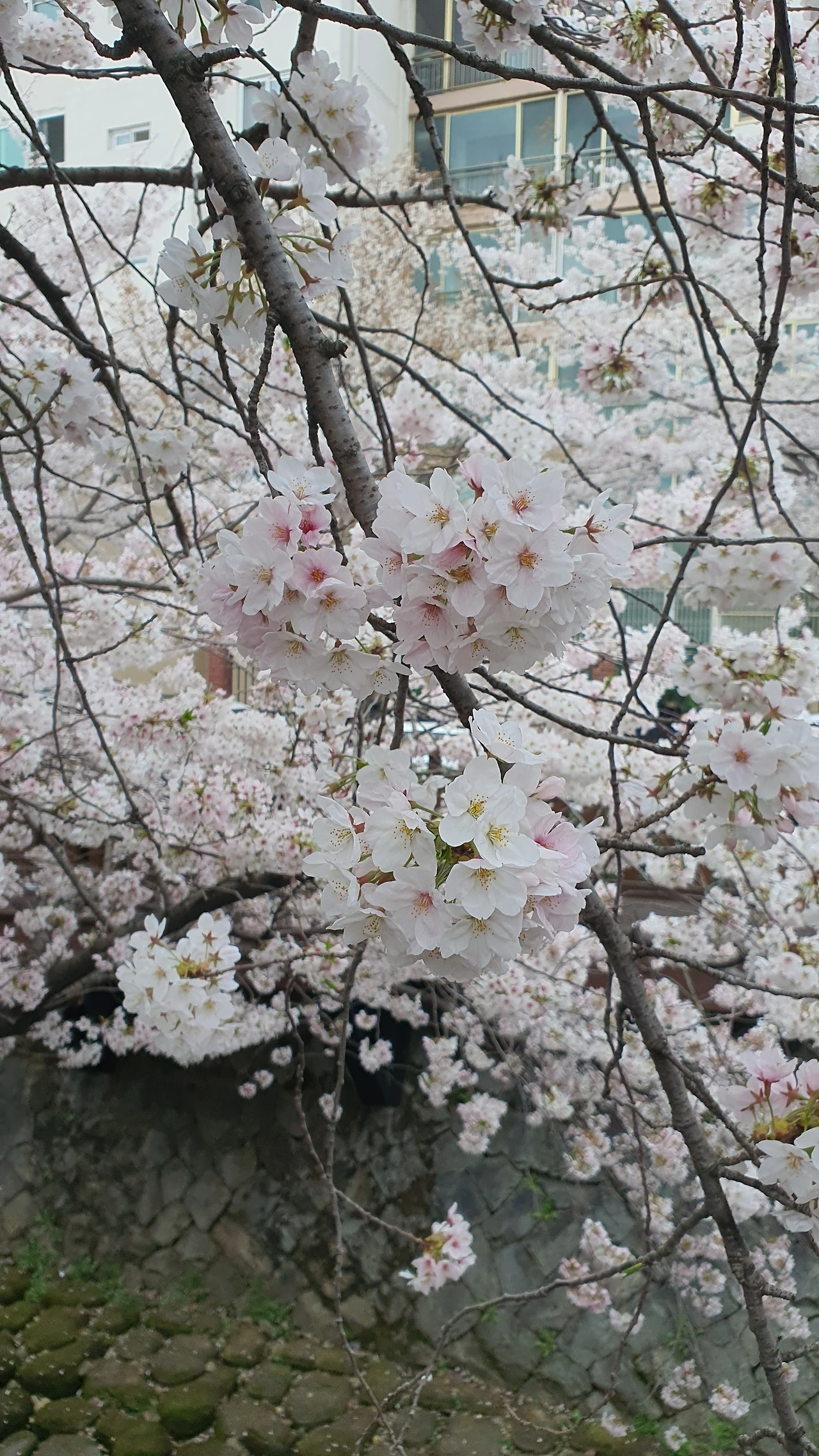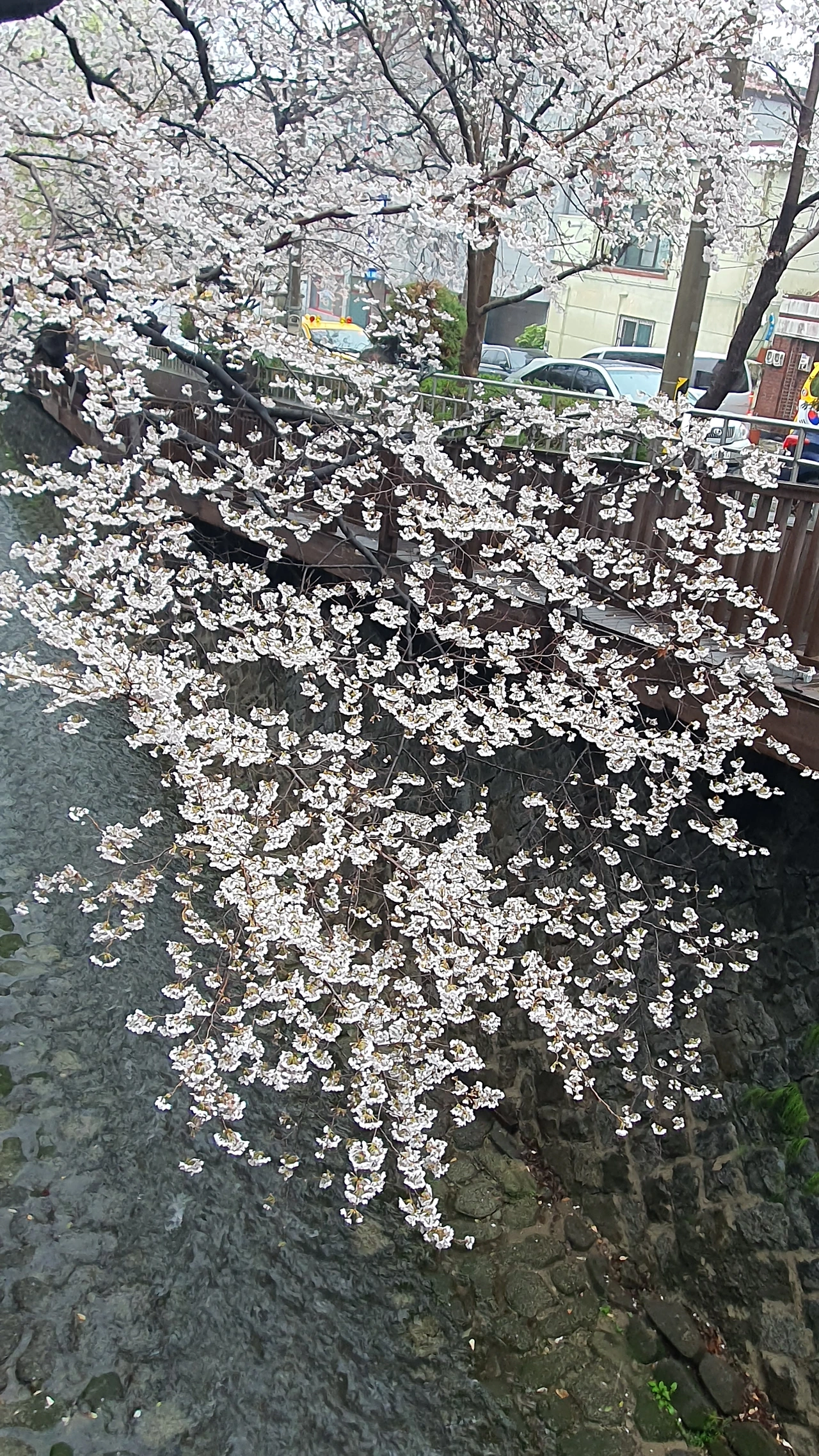 며칠 전 비에 젖어 함초롬하던 벚꽃이