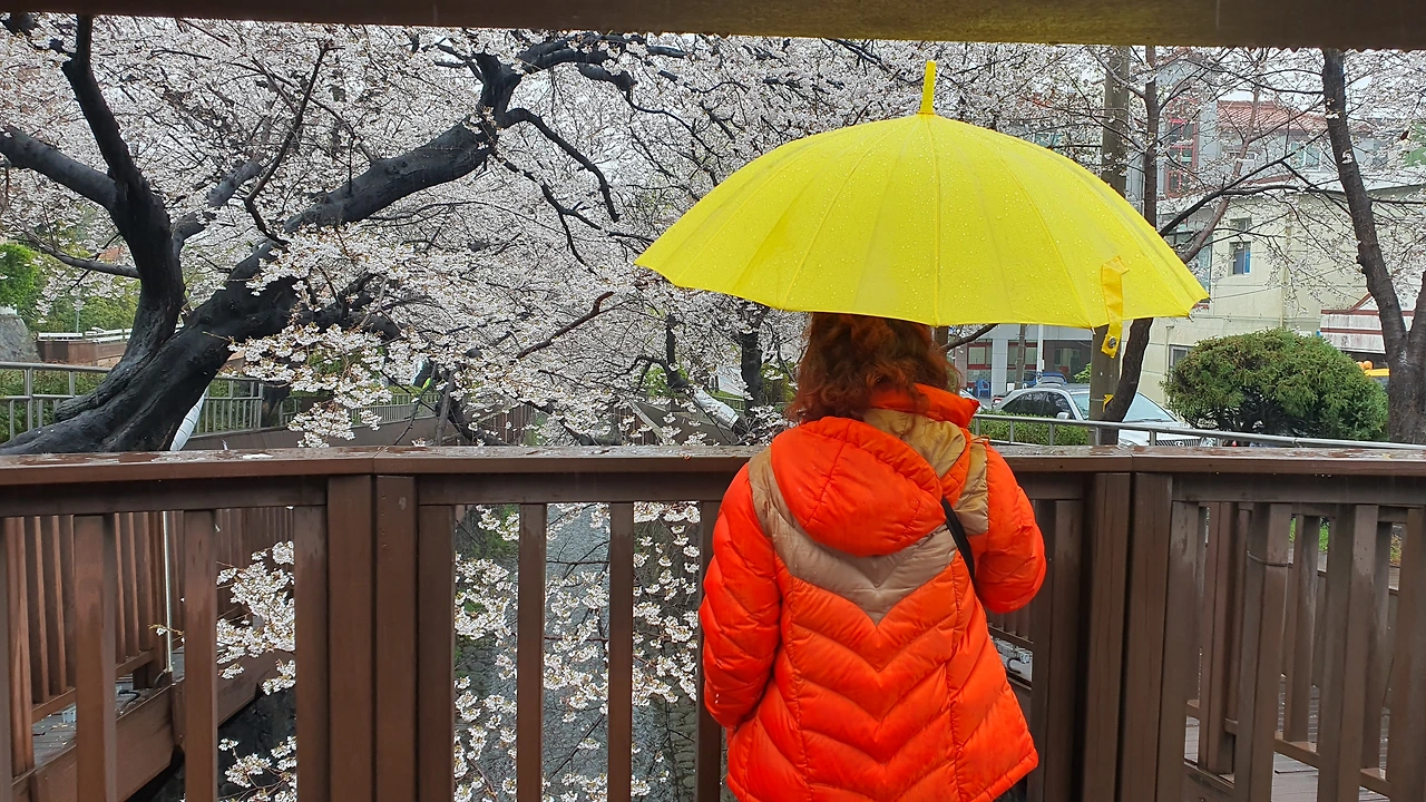다들 비 오는 밤 벚꽃을 보러 나왔는지