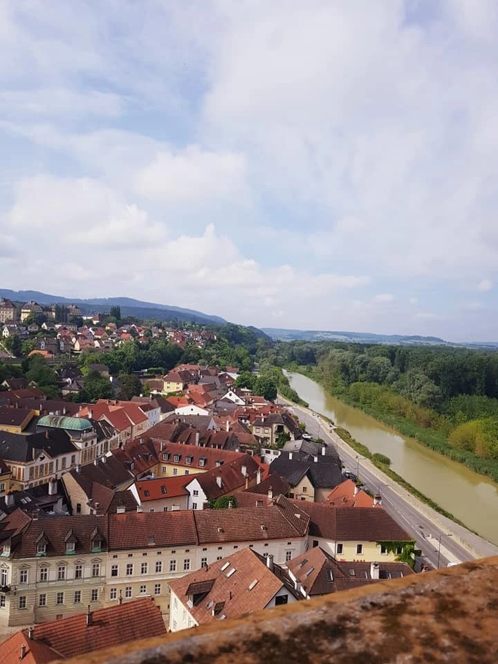수도원 위에서 바라보는 다뉴브강과 멜크시