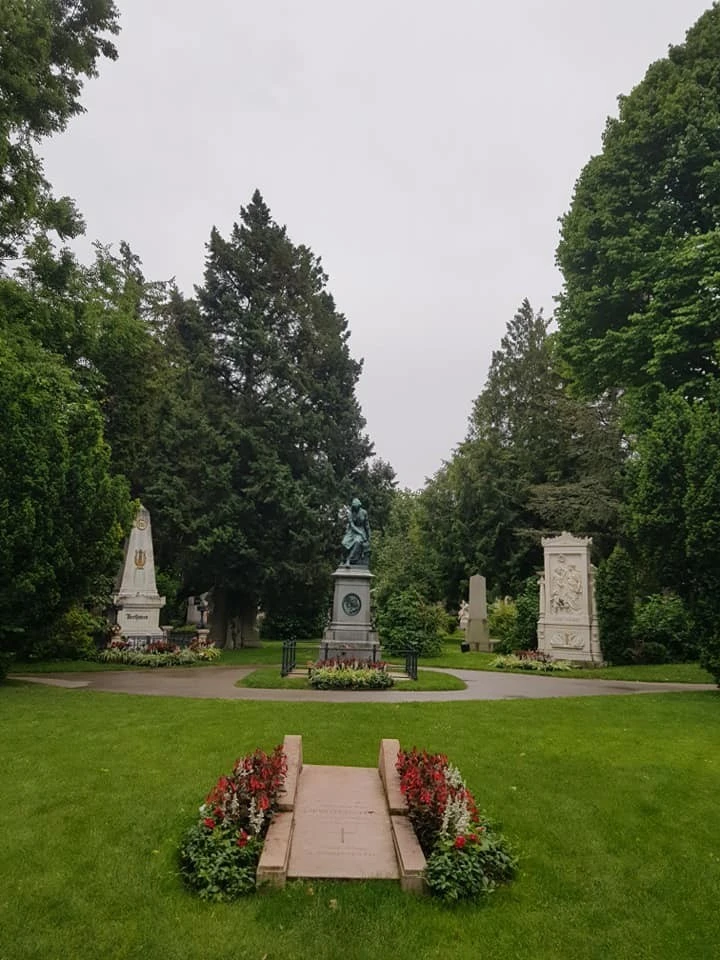 비엔나 시내 마지막 일정으로 중앙묘지를 찾아갔다. 비엔나 시민수 보다 몇 배나 많은 사람들이 묻혀있다는 공원묘지는 정말 엄청난 규모였다. 원래 빈 시내에 흩어져있던 5개의 공동묘지를 한 곳으로 모아 새로 조성했는데 세계에서 젤 크다는 말도 있다. 비는 부슬대며 오는데 트램과 지하철을 갈아타며 외진 곳으로 오후 늦은 시간에 가면서 이 날씨에 묘지에 나 혼자면 어떡하나? 싶기도 했는데 그 시간 그 날씨에도 사람들은 간간히 있어서 다행스러웠다. 무수히 많은 비석들 중 그래도 내가 아는 이름인 음악가들의 무덤을 찾았다.