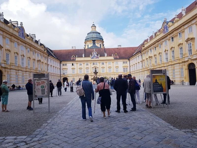 영화의 배경으로 본 수도원은 음침, 으스스했는데 실제 도착해서 올려다보는 수도원은 입구부터 노란색으로 밝고 모습이 화려하면서도 웅장한데 전형적인 바로크 양식이라 한다. 원래에는 왕궁이었던 곳을 기증해서 수도원이 되었는데 학교와 도서관으로 이용되고 도서관에는 10만 권의 장서가 있다.