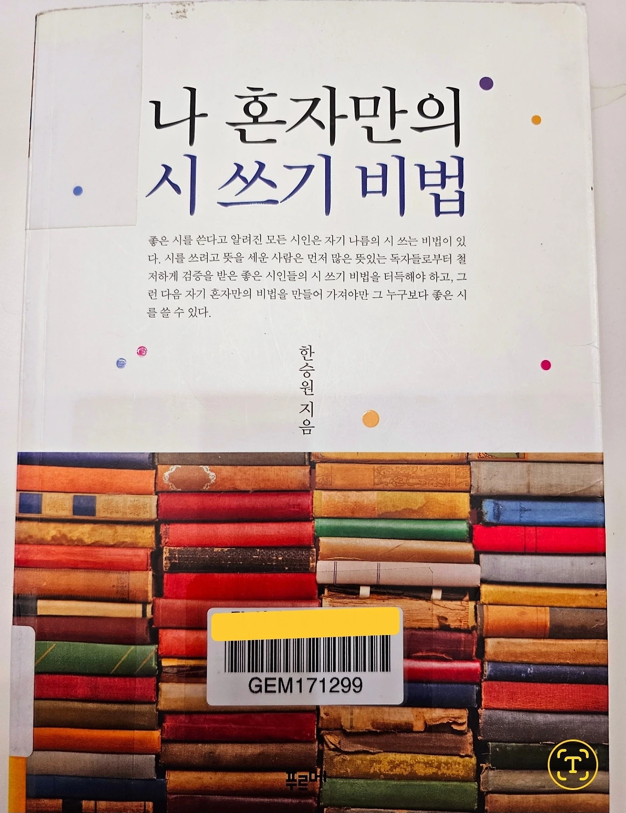이 책은 십 년전에 나왔다. 그러니 지금 60년 째 시인이자 소설가로 활발하게 글을 쓰시는 작가님이 직접 터득하여 전수하는 나 혼자만의 시 쓰기 비법이다.